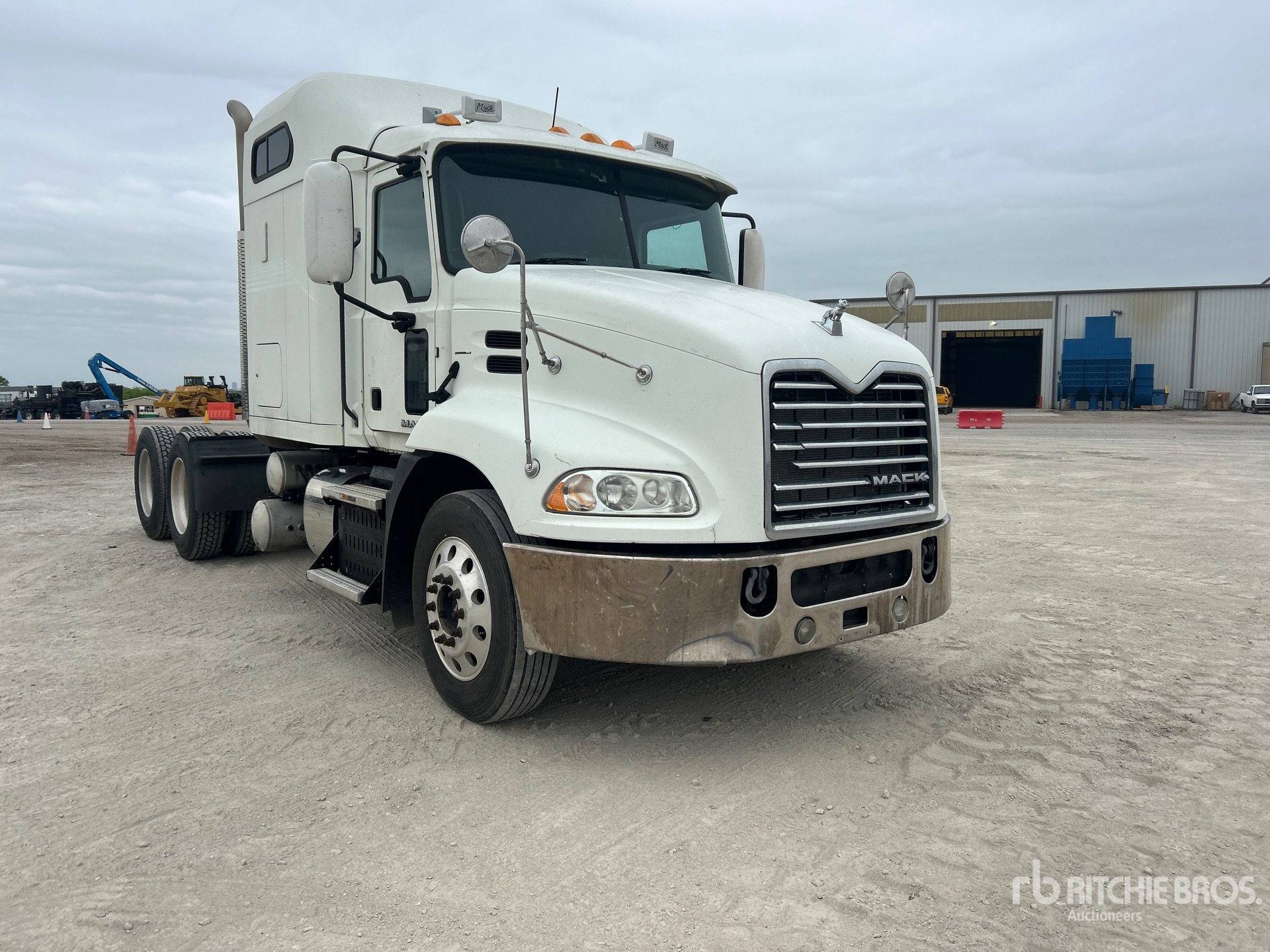 Mack MP7 395 hp Engine, 2014 US EPA Label, 10766 Engine hrs, Eaton Fuller 13-Speed Manual Transmission, 12350 lb Front Axle, 40000 lb Rears, 52350 lb GVWR, 60 in High Rise Sleeper Cab, 218 in Wheelbase, Air Suspension, Aluminum Wheels, 285/75R24.5