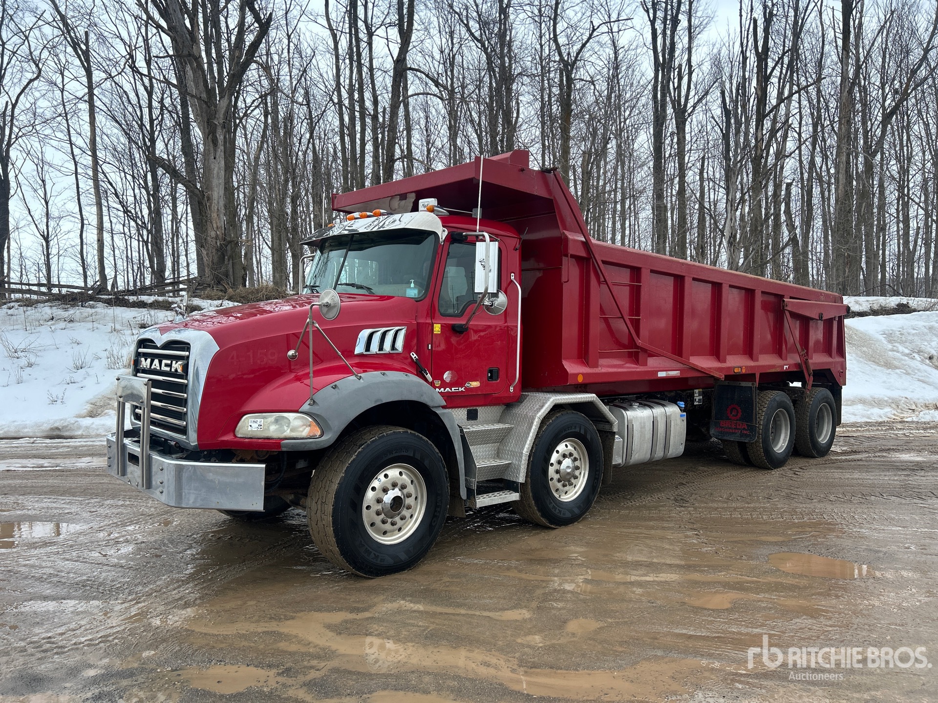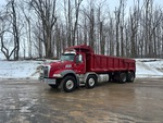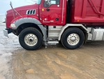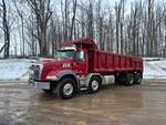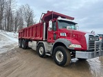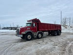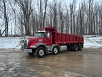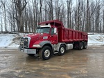 Located in Lane 13 Spot 14, Mack MP8 6 Cylinder 12.8 L Diesel 505 hp Engine, 2014 US EPA Label, CARB Compliant, 16807 Engine hrs, Engine Brake, Allison 6-Speed Automatic Transmission, Differential Lock, 9100 kg Front Axle, 20800 kg Rears, 29900 kg GVWR, Air Ride Cab, Aluminum Wheels, 425/65R22.5 Front Tires, 11R22.5 Rear Tires, Dual Steering Boxes, Double Frame, Hendrickson Haulmaax Suspension, 250 in Wheelbase, PTO, 21 ft 6 in Long Steel Body, Air Powered Roll Tarp, High-Lift Tailgate