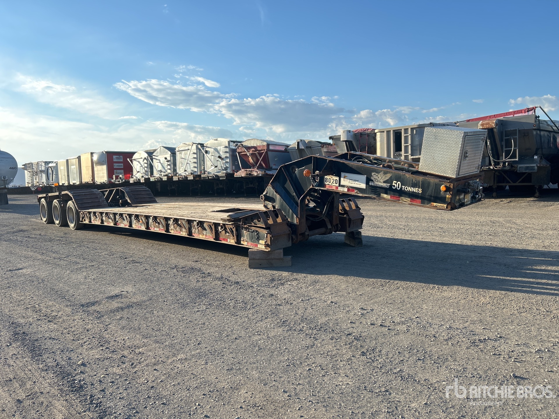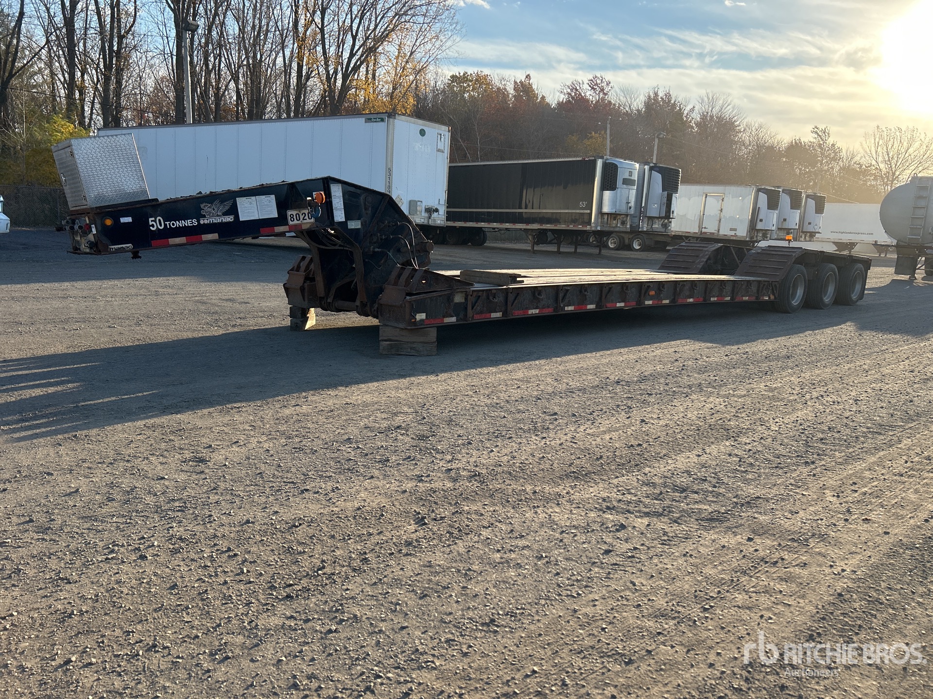 Air Ride Suspension, Air Brakes, Mechanical Removable Gooseneck, 25 ft Main Deck, 102 in Usable Deck Width, 102 in Overall Deck Width, Folding Side Extensions, Boom Recess, Aluminum Wheels, 275/70R22.5 Tires, 49443 kg GVWR