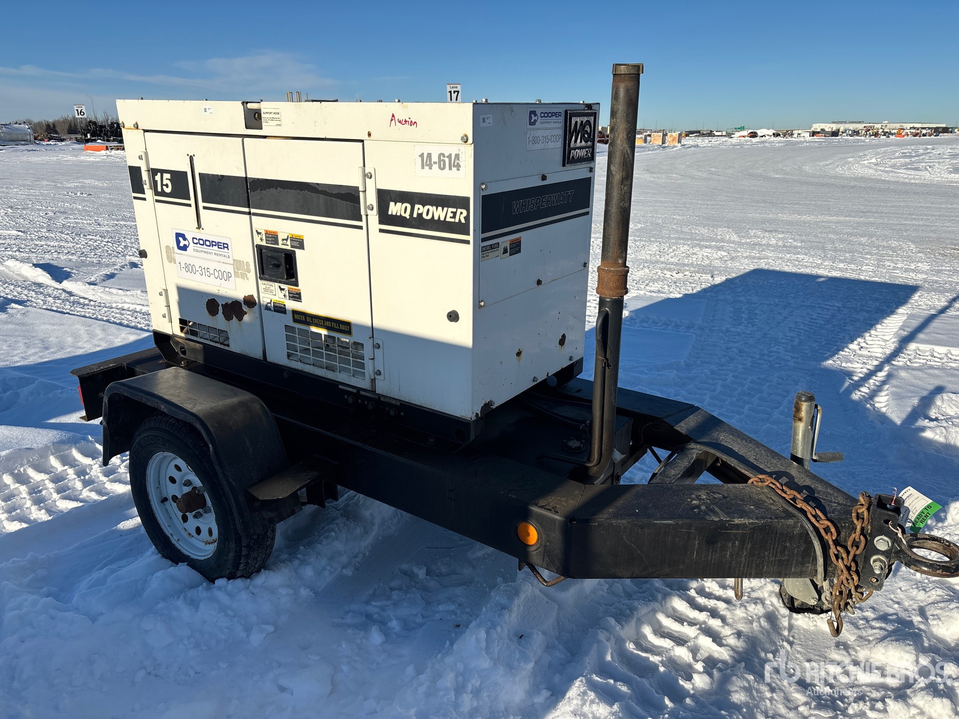 2014 US EPA Label, Kubota D1503-M-BG-EF01e 3 Cylinder 18.5 kW 1.5 L Diesel Engine, /14 kW, Rated Single Phase Output, 120 V / 240 V Rated Voltage, Lunette Ring Carrier Trailer
