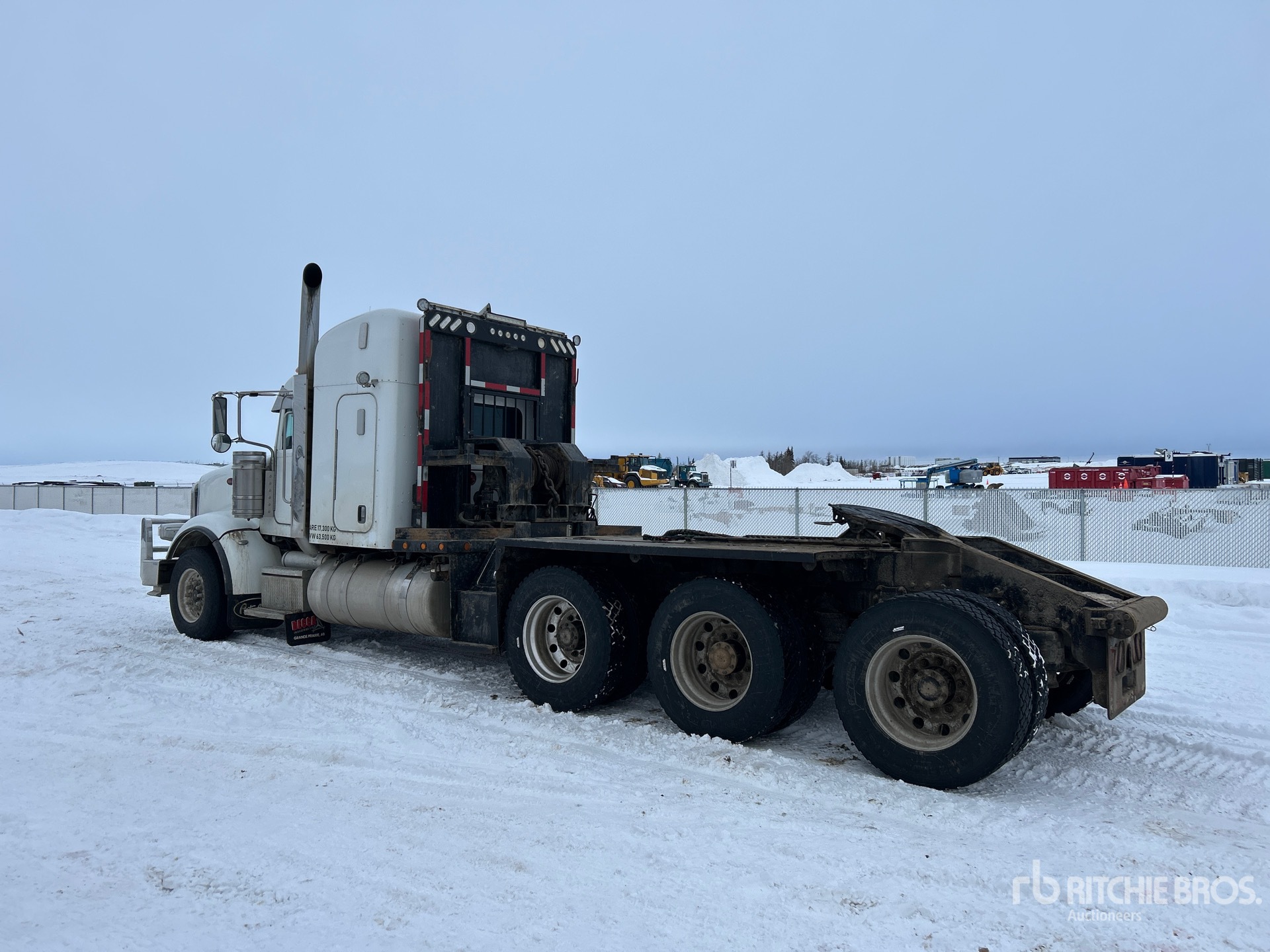 Cummins ISX 600 hp Engine, Engine Coolant Heater, 2014 US EPA Label, 20812 Engine hrs, 16001 lb Front Axle, 60999 lb Rears, 77000 lb GVWR, Air Suspension, Aluminum Wheels, 385/65R22.5 Front Tires, 11R24.5 Rear Tires, Dual Steering Boxes, Air Sliding 5th Wheel, Dual Fuel Tanks, Winch, Rolling Tailboard
