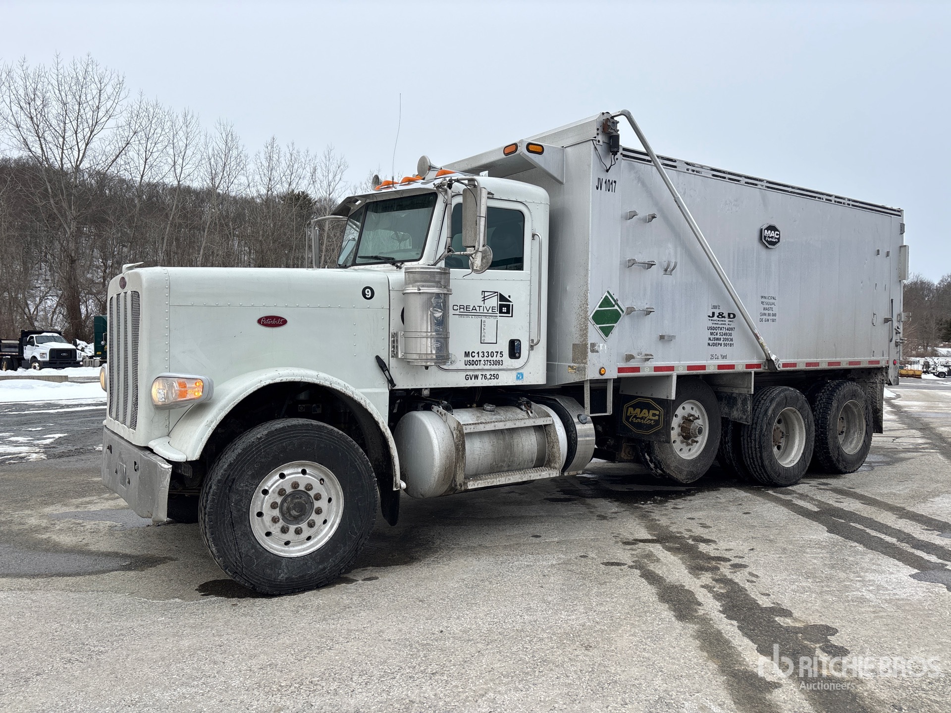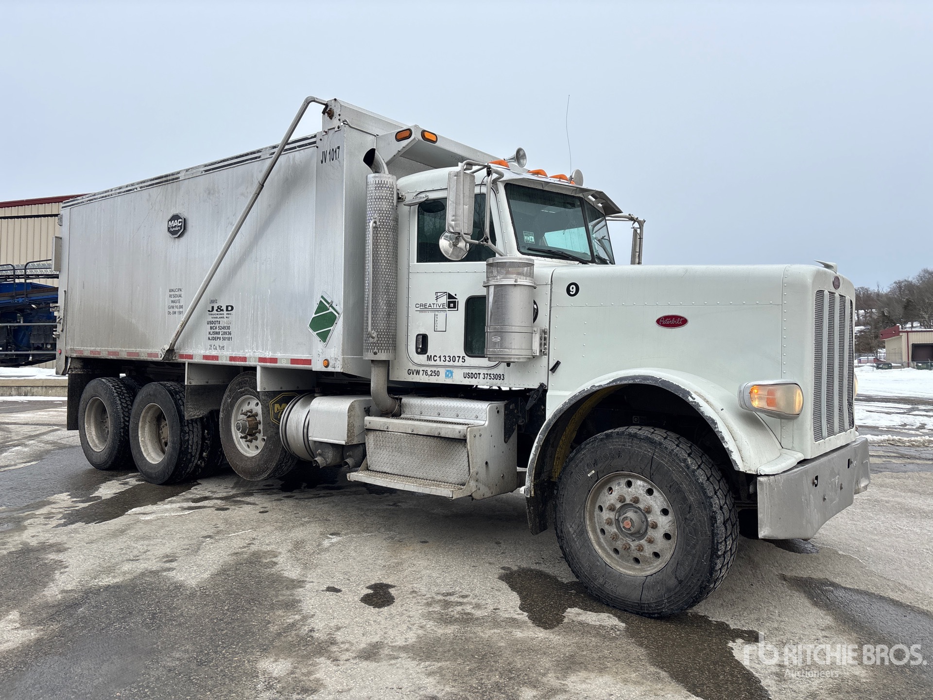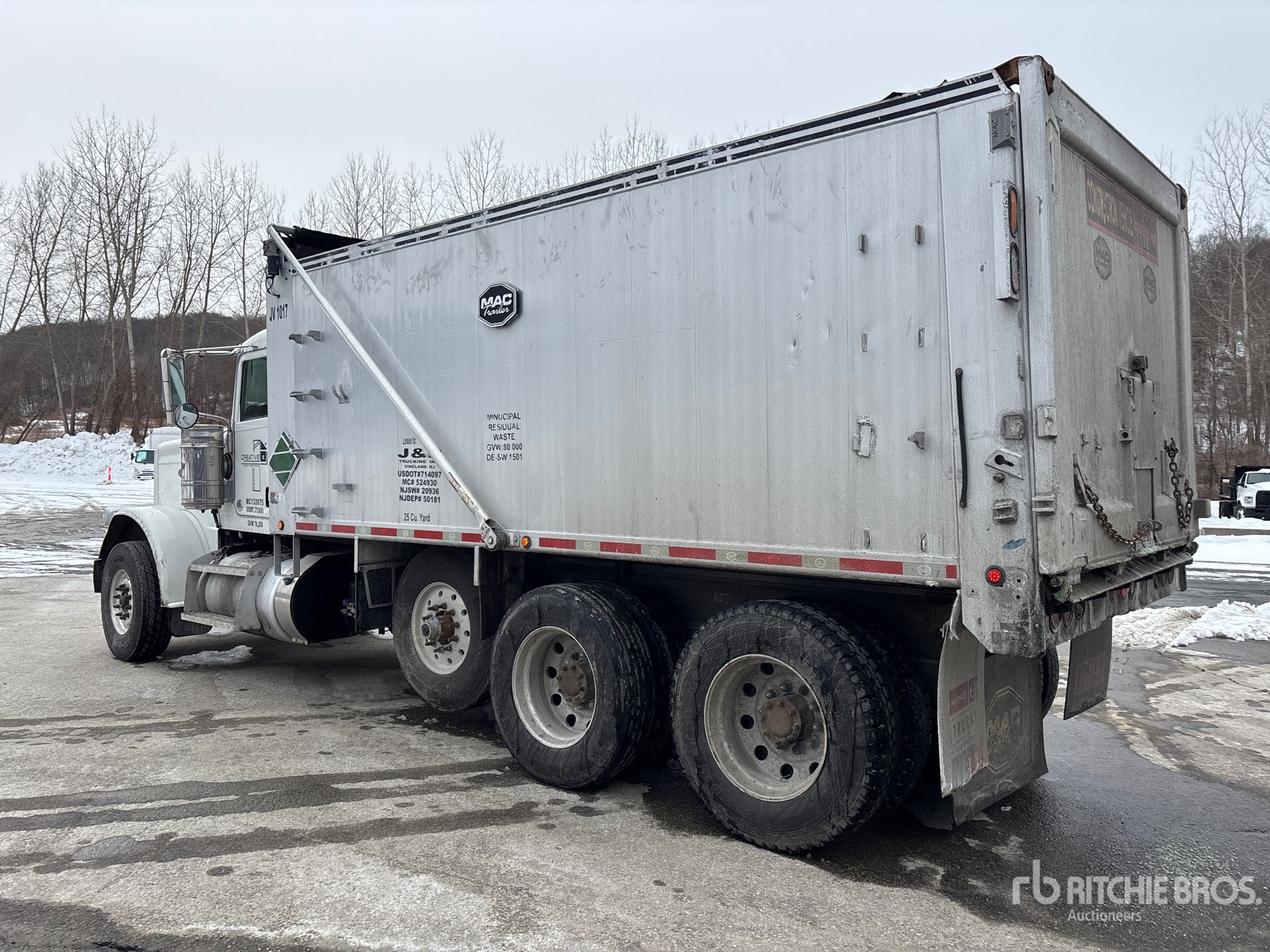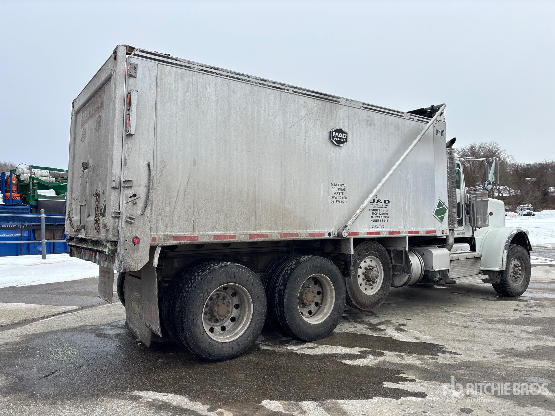Cummins ISX 6 Cylinder 15 L Diesel 500 hp Engine, Requires Diesel Exhaust Fluid, 17897 Engine hrs, Engine Brake, Eaton Fuller 8LL Manual Transmission, Double Differential Locks, 18000 lb Front Axle, 44000 lb Rears, 74350 lb GVWR, Air Ride Cab, Aluminum Wheels, 315/80R22.5 Front Tires, 11R24.5 Rear Tires, Dual Steering Boxes, Double Frame, Air Trac Air Ride Suspension, 242 in Wheelbase, PTO, Mac 18 ft Long x 6 ft High Aluminium Body, 25 cyd, Capacity, Electric Roll Tarp, Tailgate Chute