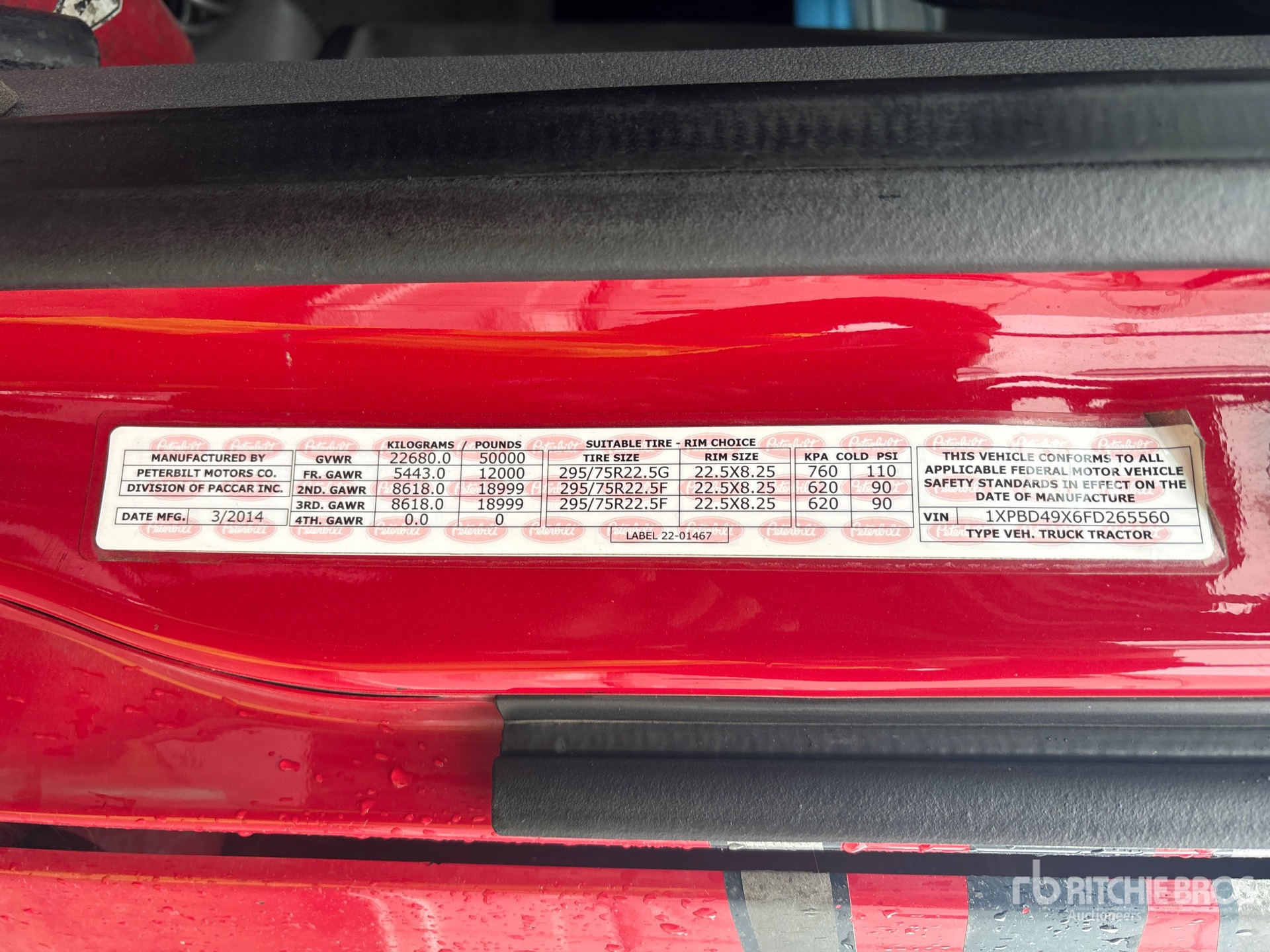 Cummins ISX15 400 hp Engine, 2014 US EPA Label, Eaton Fuller 18-Speed Manual Transmission, 12000 lb Front Axle, 38000 lb Rears, 50000 lb GVWR, Engine Brake, 63 in Mid Roof Sleeper Cab, Bunk Heater, 228 in Wheelbase, Air Suspension, Aluminum Wheels, 295/75R22.5, Air Sliding 5th Wheel, Dual Fuel Tanks