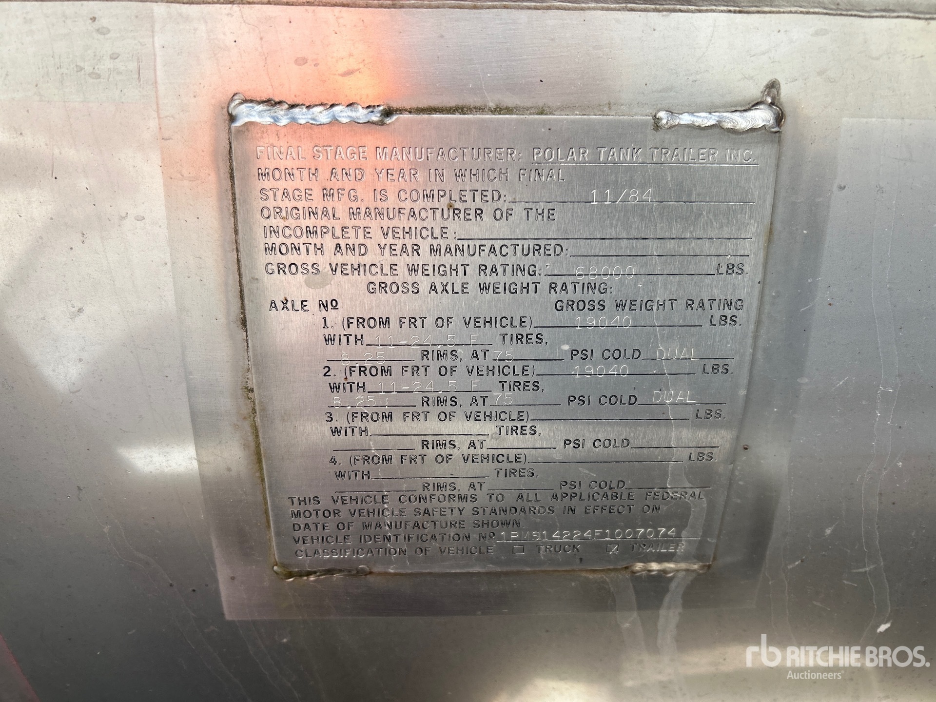 Spring Suspension, Aluminum Wheels, 11R24.5 Tires, Aluminum Tank, Honda Gasoline Powered Pump, 68000 lb GVWR