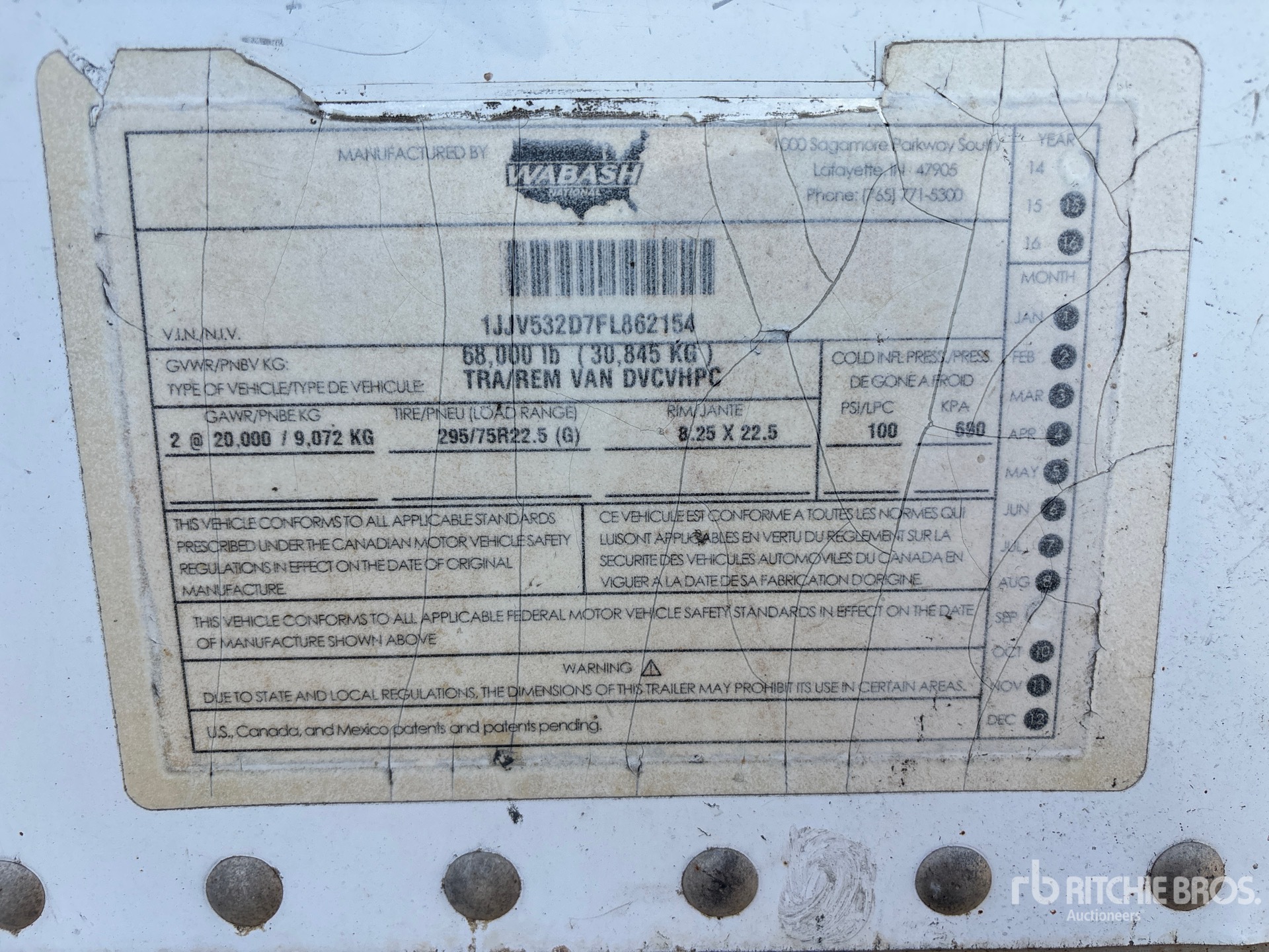 2015 Wabash DVCVHPC 53 ft x 102 in T/A Van Trailer