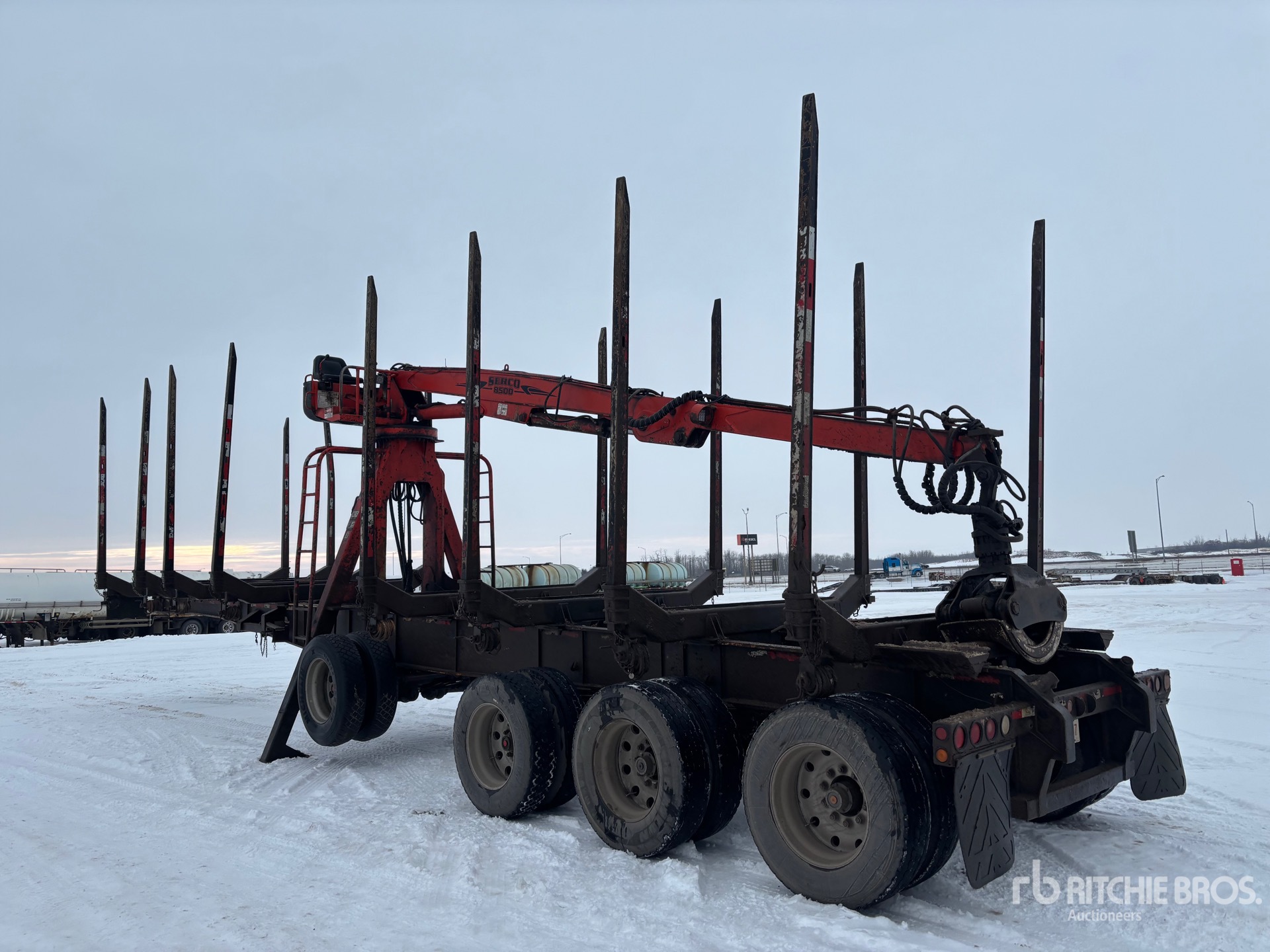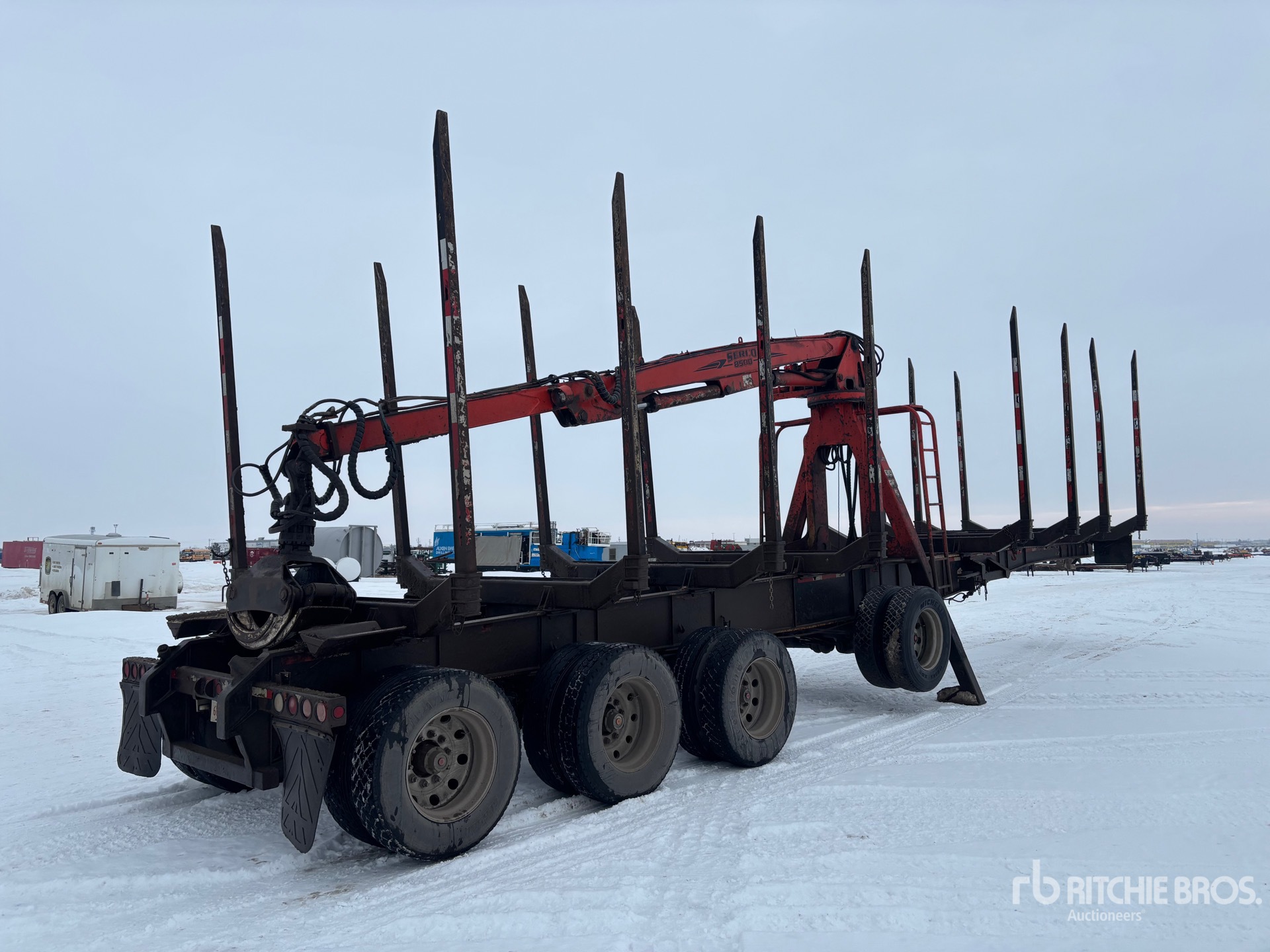 Serco 8500 Boom, Center Mounted, Articulated Boom, ( 8 ) 10 ft Bunks, Air Ride Suspension, Air Brakes, Lift 1st- Axles, Steering 1st- Axle, Aluminum Wheels, 11R24.5 Tires