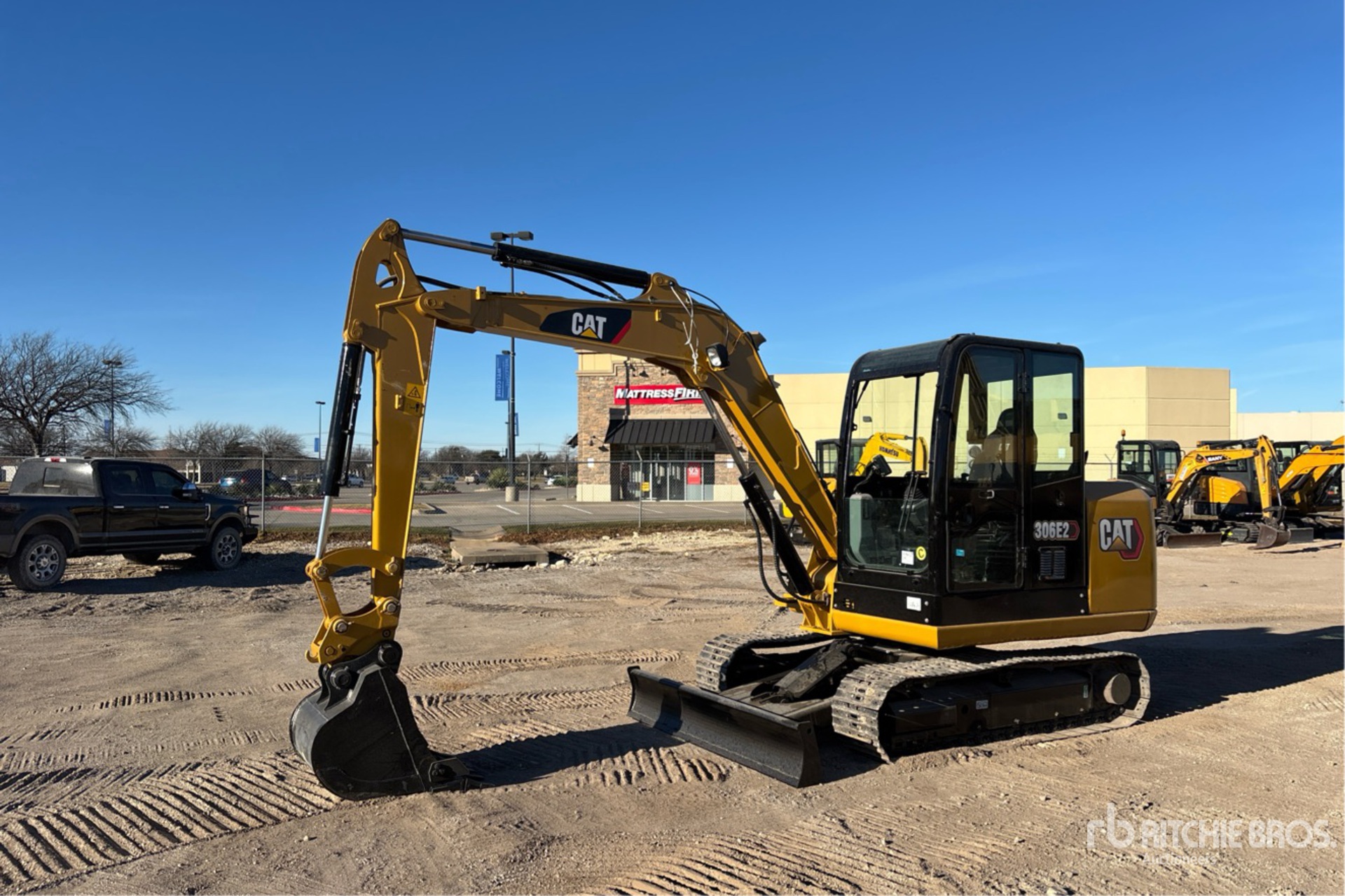 Enclosed Cab, Air Conditioner, 2013 US EPA Label, 5 ft 6 in Stick, Backfill Blade, 15.5 in Triple Grouser Track Shoes, Hydraulic Quick Coupler, 28 in Digging Bucket