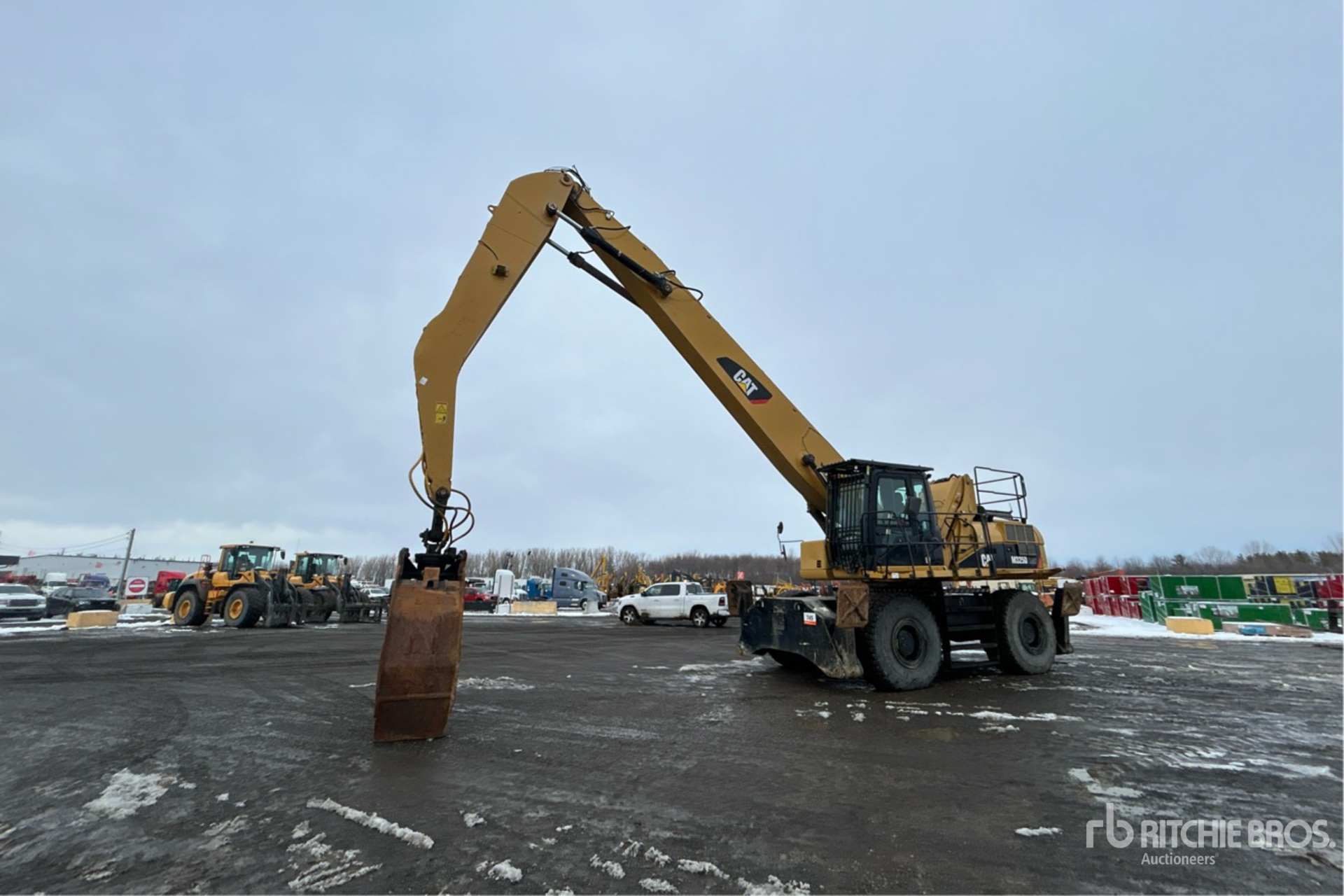 Air Conditioner, Hydraulic Cab Riser, Fire Suppression System, Front and Rear Stabilizers, 23.5R25 Tires, Grapple Bucket, Additional 42 in Digging Bucket, Catwalks