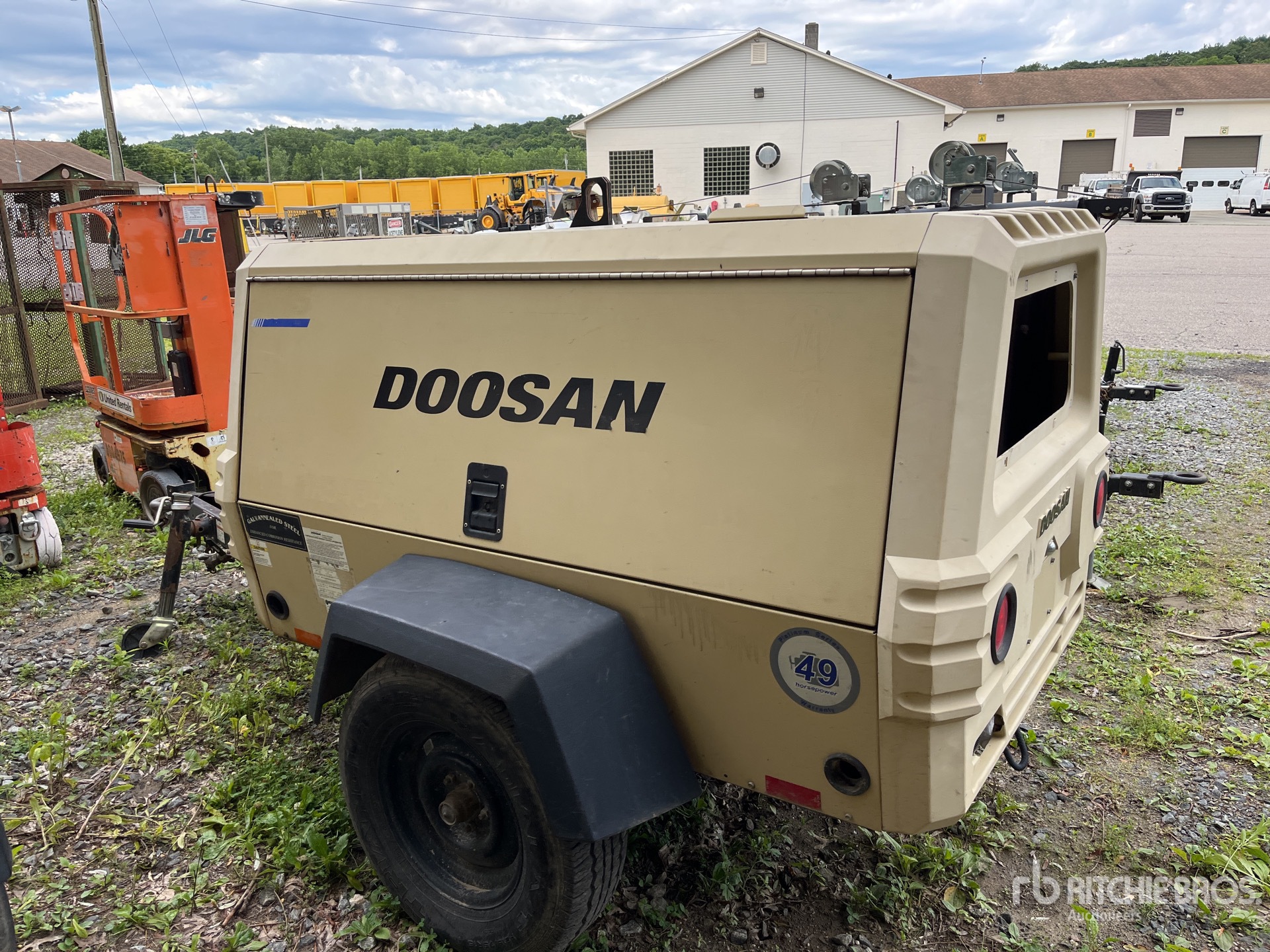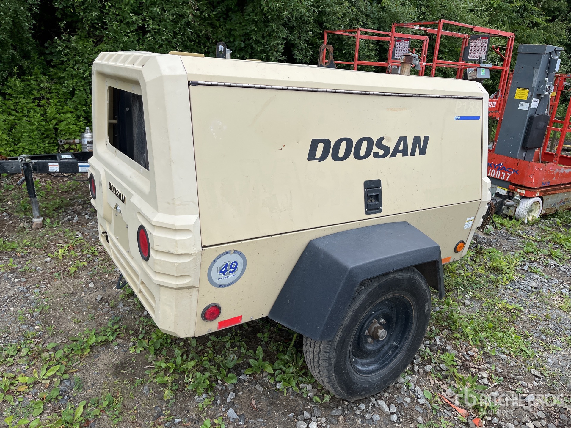 185 psi Working Pressure, 2015 US EPA Label, CARB Compliant, Doosan 4 Cylinder 49 hp 2.4 L Diesel Engine, S/A Trailer, Lunette Ring, Electric Brakes
