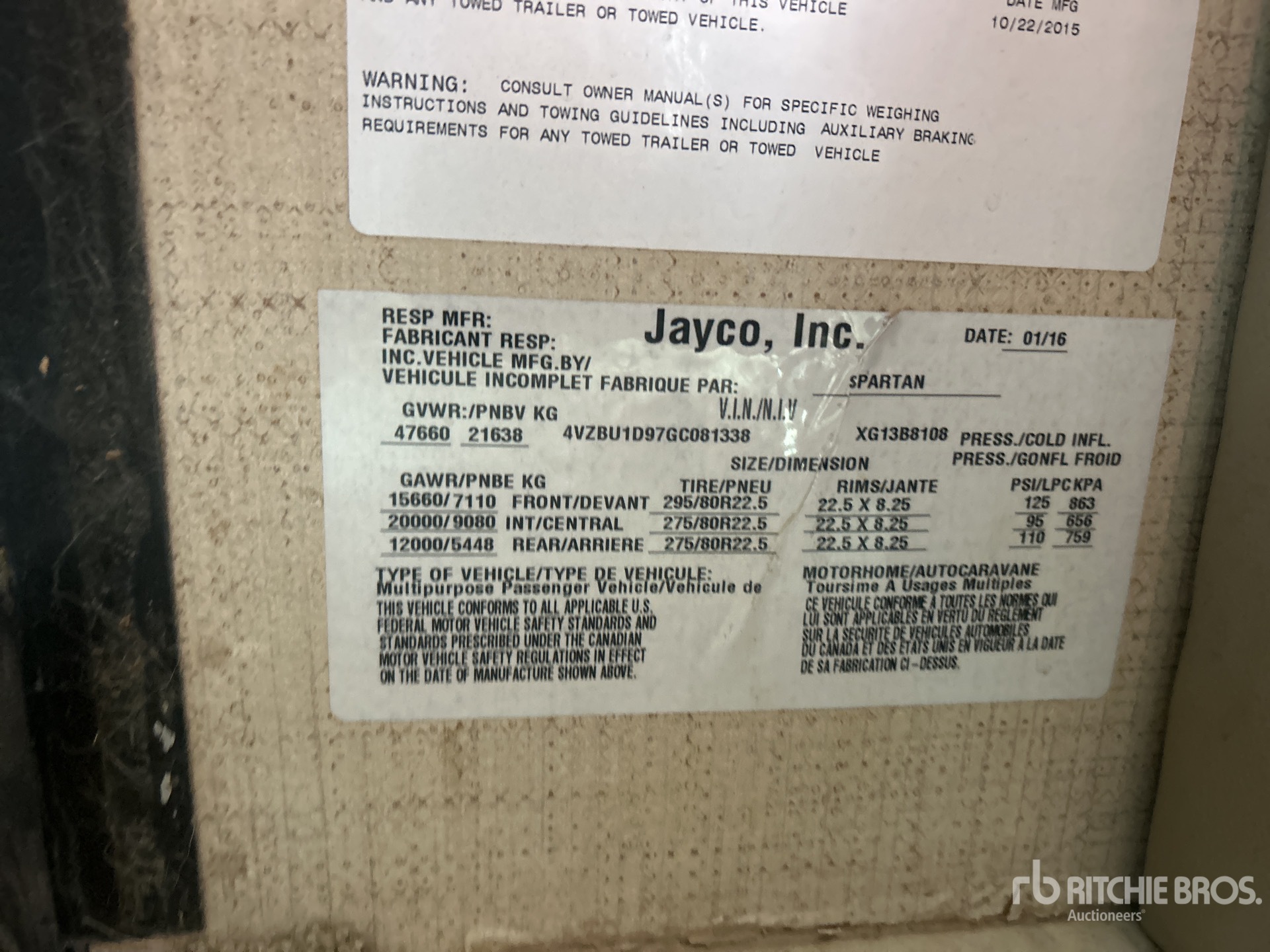 The detailed equipment information is limited in scope, and Ritchie Bros. Auctioneers has not inspected any aspects or components of the equipment other than those expressly set forth herein. Unless expressly stated, we make no representations or warranties, express or implied, concerning the equipment or its components, including without limitation any representations or warranties concerning functionality, conformity or compliance with any safety standard or requirement of any applicable authority or regulatory body, fitness for any particular purpose, or merchantability. You are strongly advised to perform your own detailed inspection of the equipment prior to bidding.