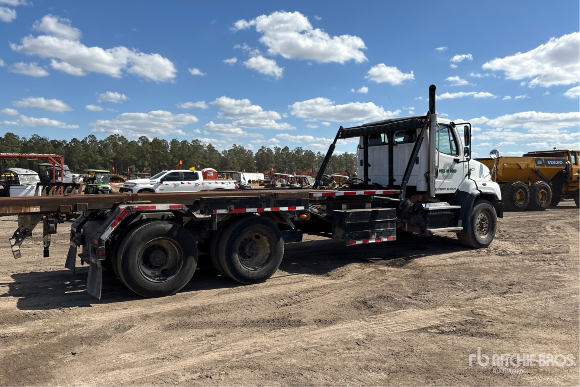 Located in Lane 52 Spot 15, Detroit DD13 12.8 L Diesel 410 hp Engine, 2015 US EPA Label, Eaton Fuller RTO-16908LL 8-Speed Manual Transmission, 20000 lb Front Axle, 46000 lb Rears, Meritor RT-40-160 Drive Axles, 3.91:1 Axle Ratio, 66000 lb GVWR, Air Ride Cab, Aluminum Front Wheels, 425/65R22.5, Spring Suspension, 251 in Wheelbase, PTO, WINAMAC 60000 lb Winch, Tarp