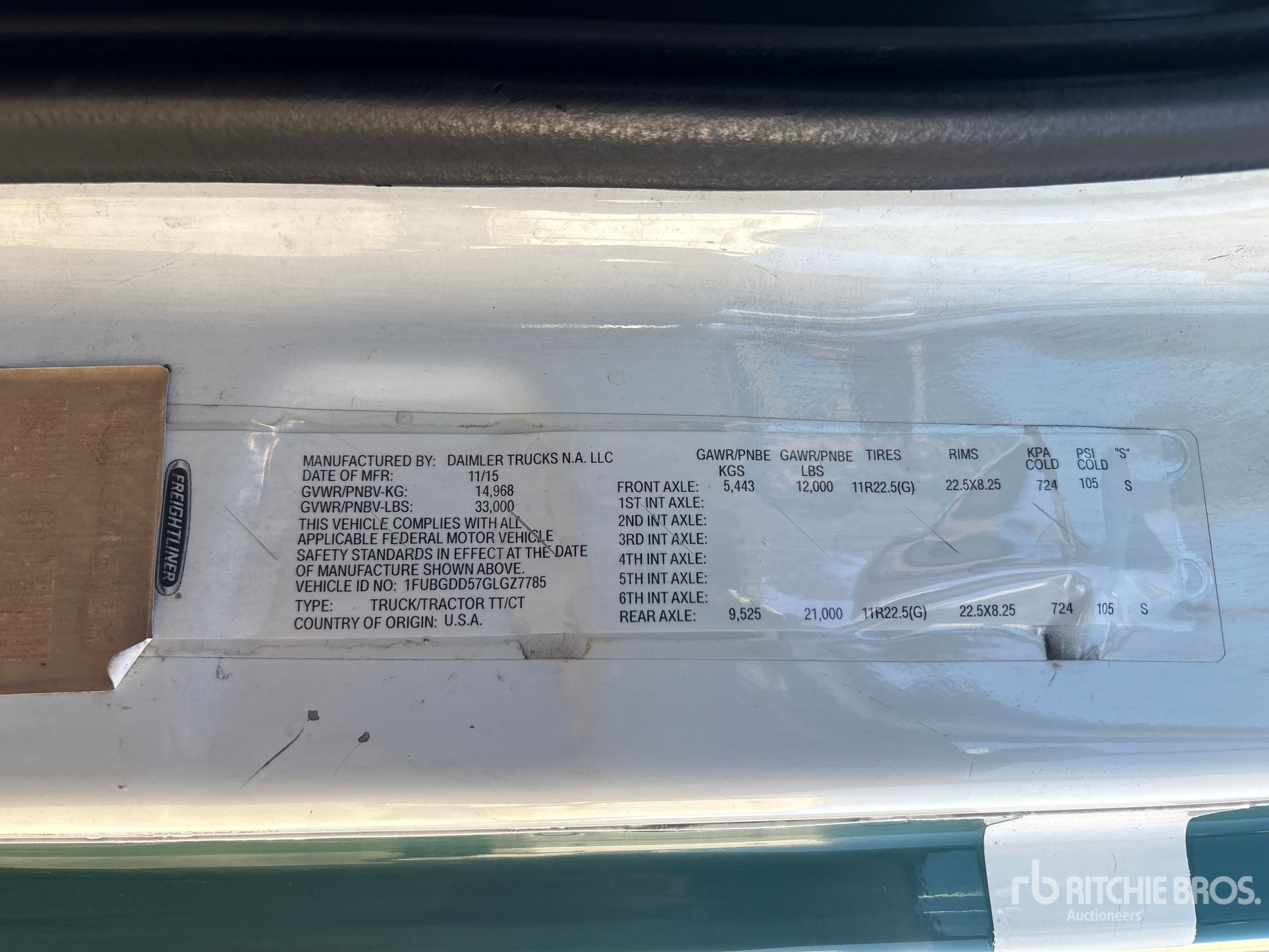 Detroit DD15 455 hp Engine, 2015 US EPA Label, Eaton Fuller FRO-15210C 10-Speed Manual Transmission, 12000 lb Front Axle, 21000 lb Rears, 33000 lb GVWR, Engine Brake, 158 in Wheelbase, Air Suspension, 11R22.5, Dual Fuel Tanks