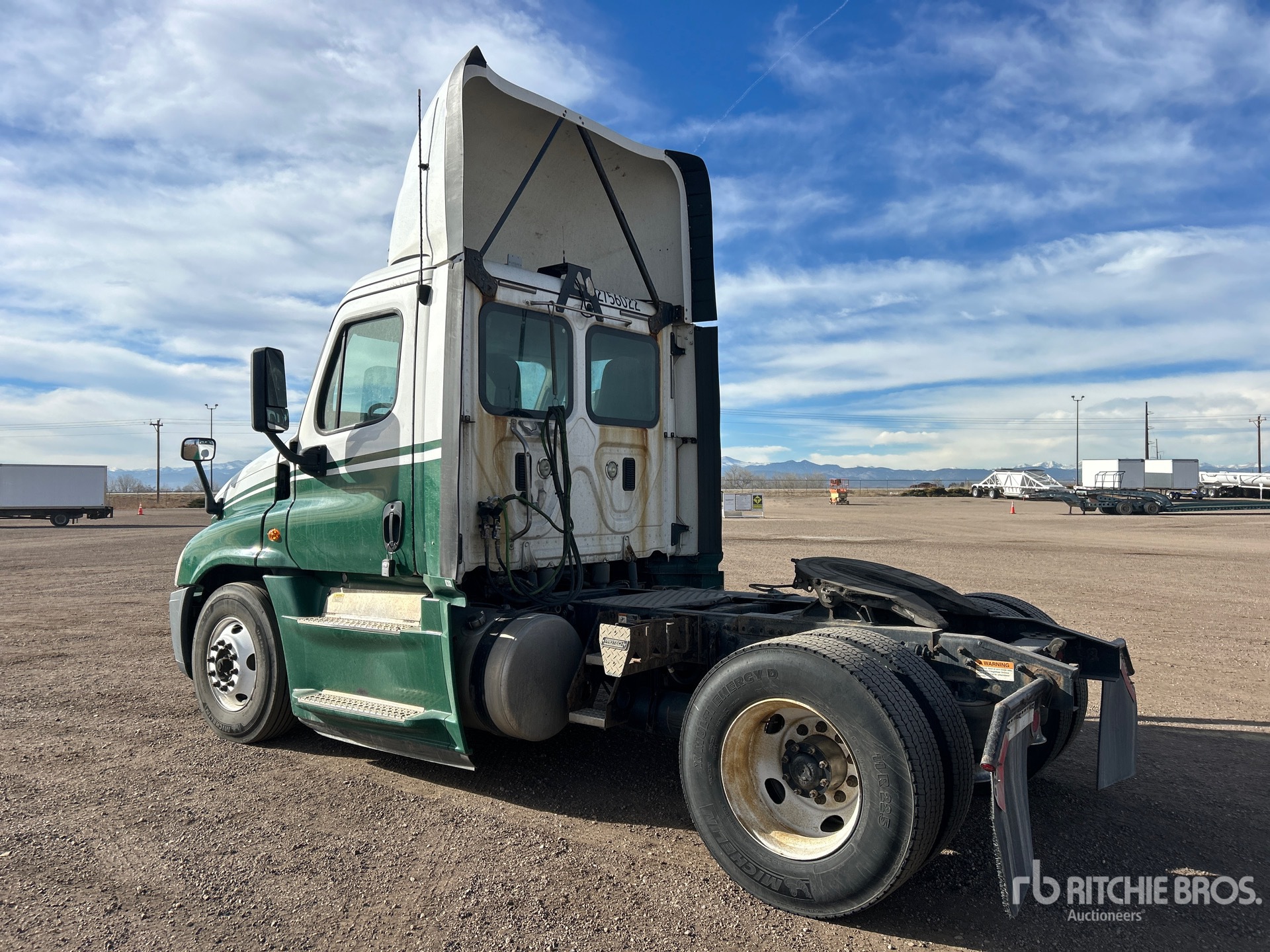Detroit DD15 455 hp Engine, 2014 US EPA Label, 18983 Engine hrs, Eaton Fuller FRO-15210C 10-Speed Manual Transmission, 13000 lb Front Axle, 21000 lb Rears, 33000 lb GVWR, 158 in Wheelbase, Air Suspension, 11R22.5, Dual Fuel Tanks