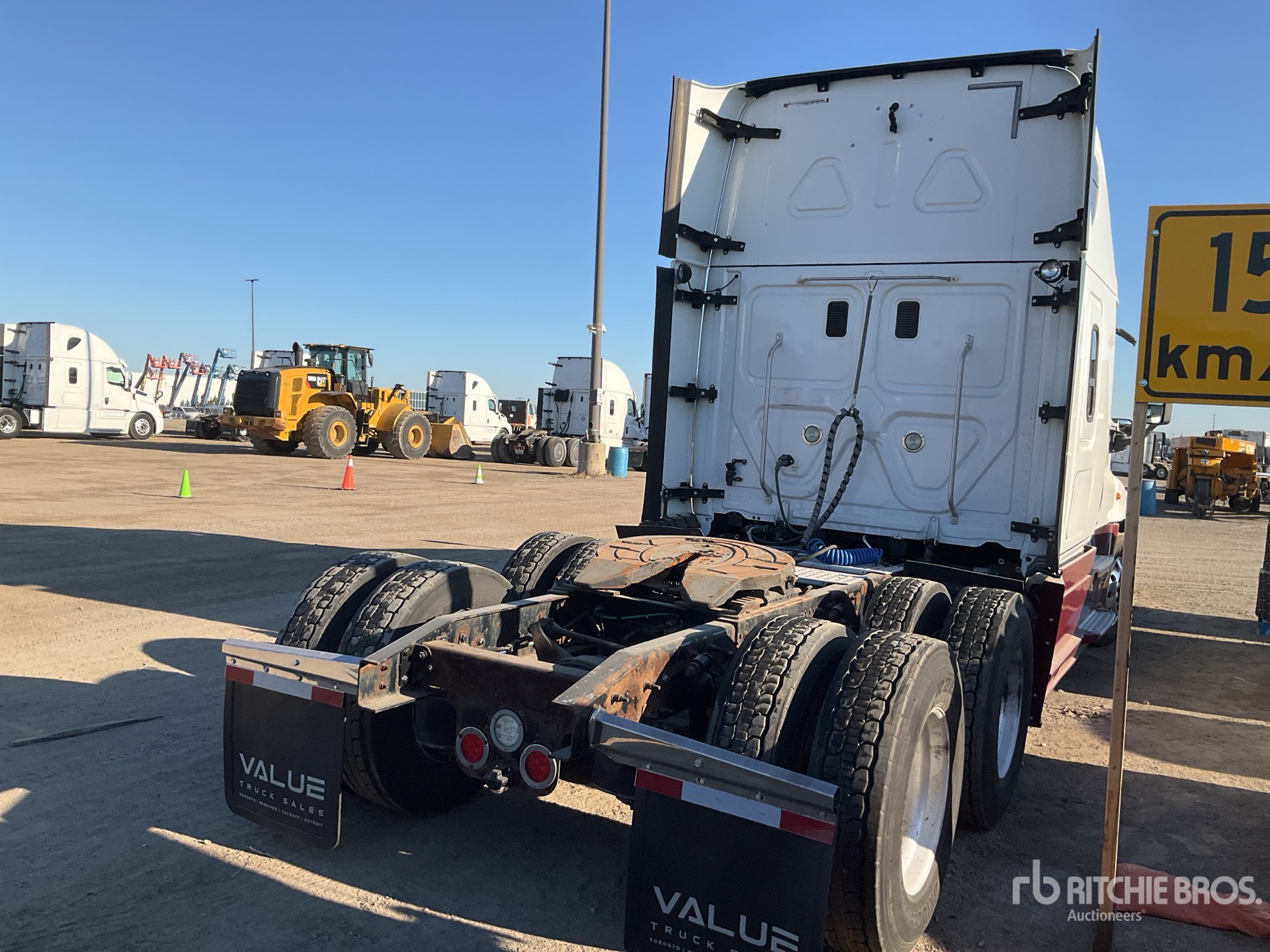 Detroit DD15 6 Cylinder 14.8 L Diesel Engine, Engine Brake, Detroit DT12-DA-1650 12-Speed Automatic Transmission, 13220 lb Front Axle, 40000 lb Rears, 2.53:1 Axle Ratio, 53220 lb GVWR, Air Ride Cab, 70 in High Rise Sleeper Cab, Bunk Beds, Aluminum Outer Wheels, 295/75R22.5, Airliner Air Ride Suspension, 228 in Wheelbase, Air Sliding 5th Wheel, Dual Fuel Tanks