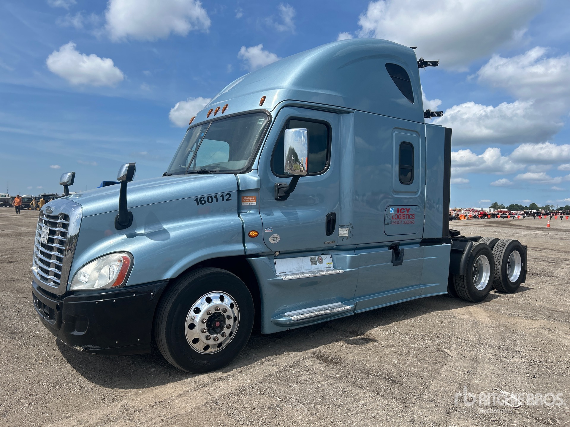 Located in Lane 35 Spot 2, Detroit DD15 455 hp Engine, 2014 US EPA Label, Detroit DT12-DA-1650 12-Speed Automated Transmission, 12000 lb Front Axle, 40000 lb Rears, 52000 lb GVWR, 60 in High Rise Sleeper Cab, Bunk Beds, 223 in Wheelbase, Aluminum Wheels, 295/75R22.5, Air Sliding 5th Wheel, Dual Fuel Tanks