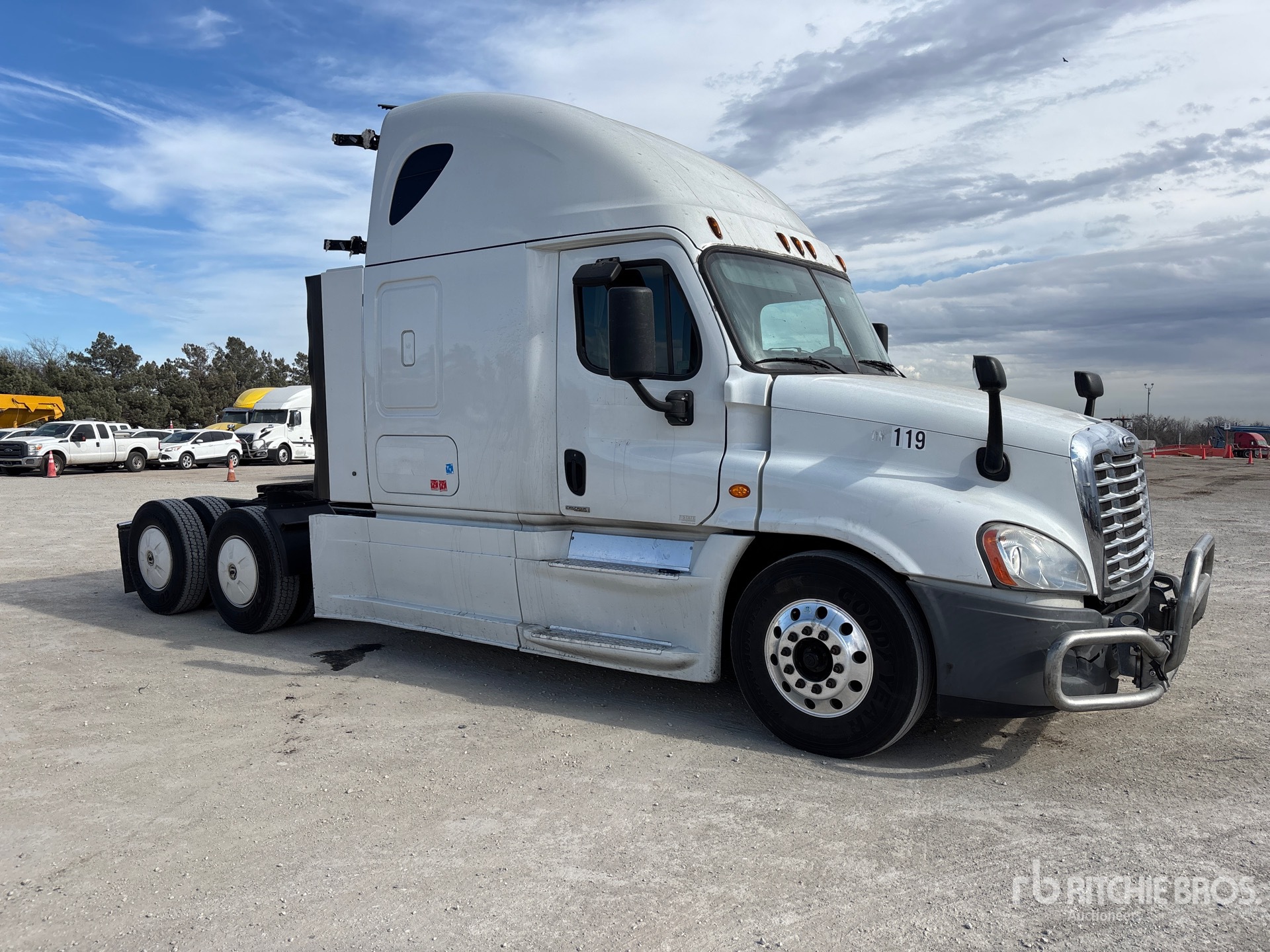 Located in Lane 38 Spot 3, Detroit DD15 400 hp Engine, 38671 Engine hrs, Detroit DT12-DA-1750HD 12-Speed Automated Transmission, 12350 lb Front Axle, 40000 lb Rears, 52350 lb GVWR, Engine Brake, 70 in High Rise Sleeper Cab, Bunk Beds, 228 in Wheelbase, Air Suspension, Aluminum Outer Wheels, 11R22.5, Air Sliding 5th Wheel, Dual Fuel Tanks