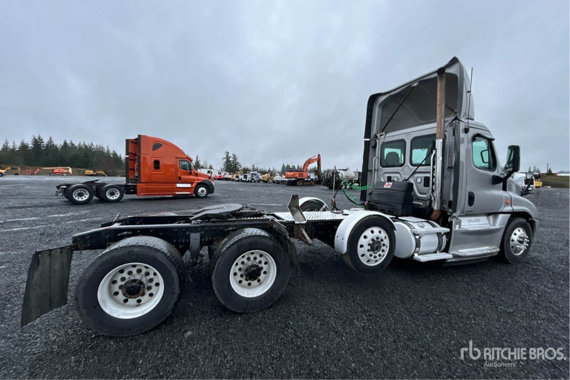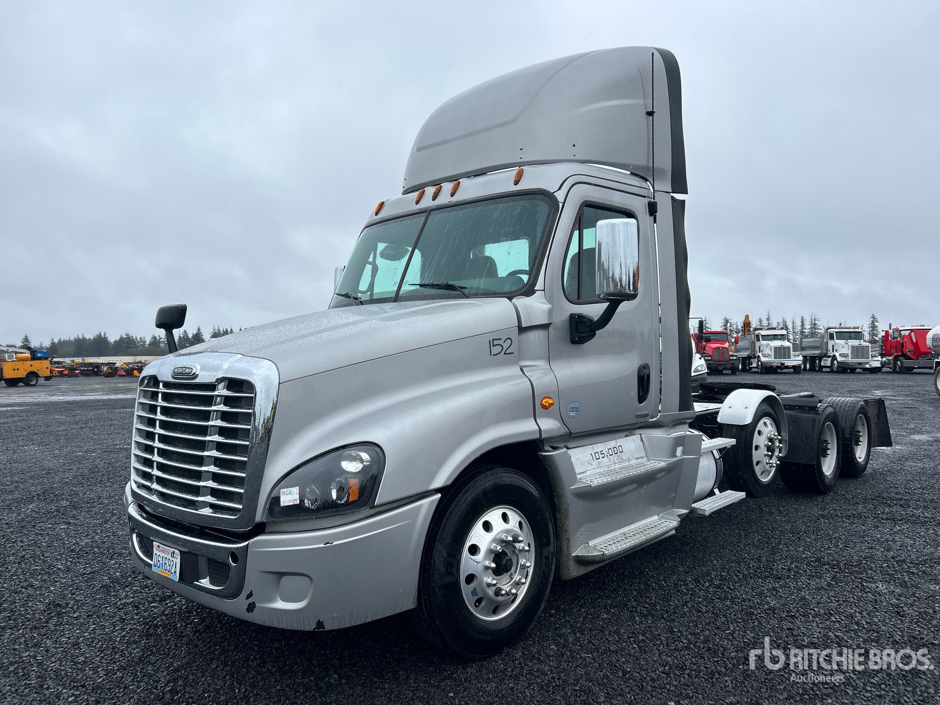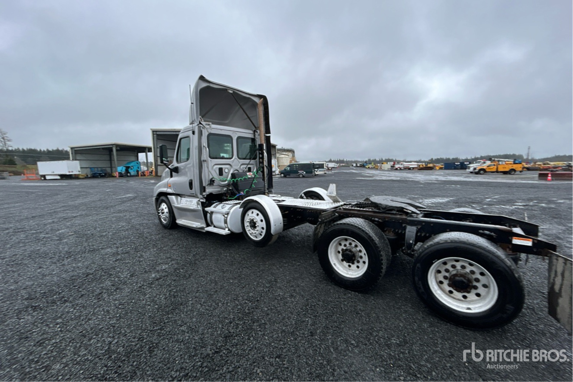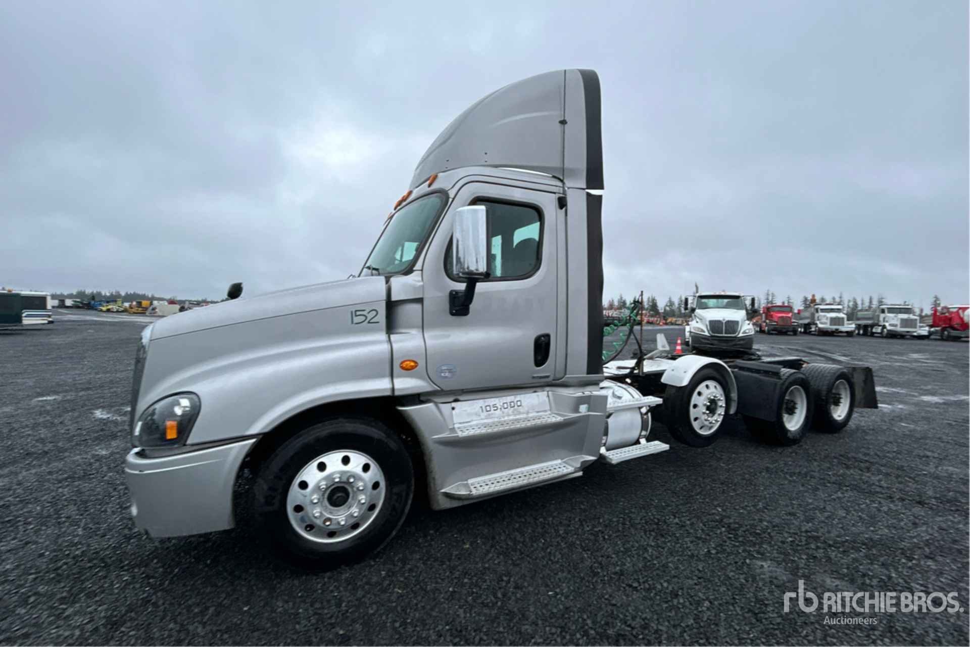 Detroit DD15 505 hp Engine, 2016 US EPA Label, 23990 Engine hrs, Eaton Fuller FRO-16210B 10-Speed Manual Transmission, 13300 lb Front Axle, 51020 lb Rears, 64320 lb GVWR, Engine Brake, 250 in Wheelbase, Air Suspension, Air Lift Pusher Axle, Aluminum Wheels, 295/75R22.5 Front Tires, 445/50R22.5 Super Singles Rear Tires, Wet Kit, Air Sliding 5th Wheel, Dual Fuel Tanks