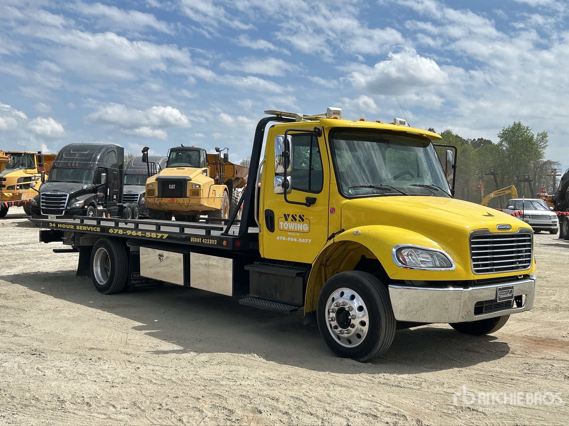 Located in Lane 5 Spot 10, Cummins ISB 6 Cylinder 6.7 L Diesel 260 hp Engine, 2015 US EPA Label, Requires Diesel Exhaust Fluid, 16894.2 Engine hrs, Allison 2100 Automatic Transmission, 10000 lb Front Axle, 18000 lb Rears, Meritor MS-19-14X Drive Axles, 4.88:1 Axle Ratio, 26000 lb GVWR, Aluminum Outer Wheels, 255/70R22.5 Front Tires, 255/70R22.5 Rear Tires, Airliner Air Ride Suspension, 210 in Wheelbase, PTO, CENTURY Rollback Body, 21 ft 6 in x 102 in Bed, R121818 Winch, Hydraulic Wheel Lift