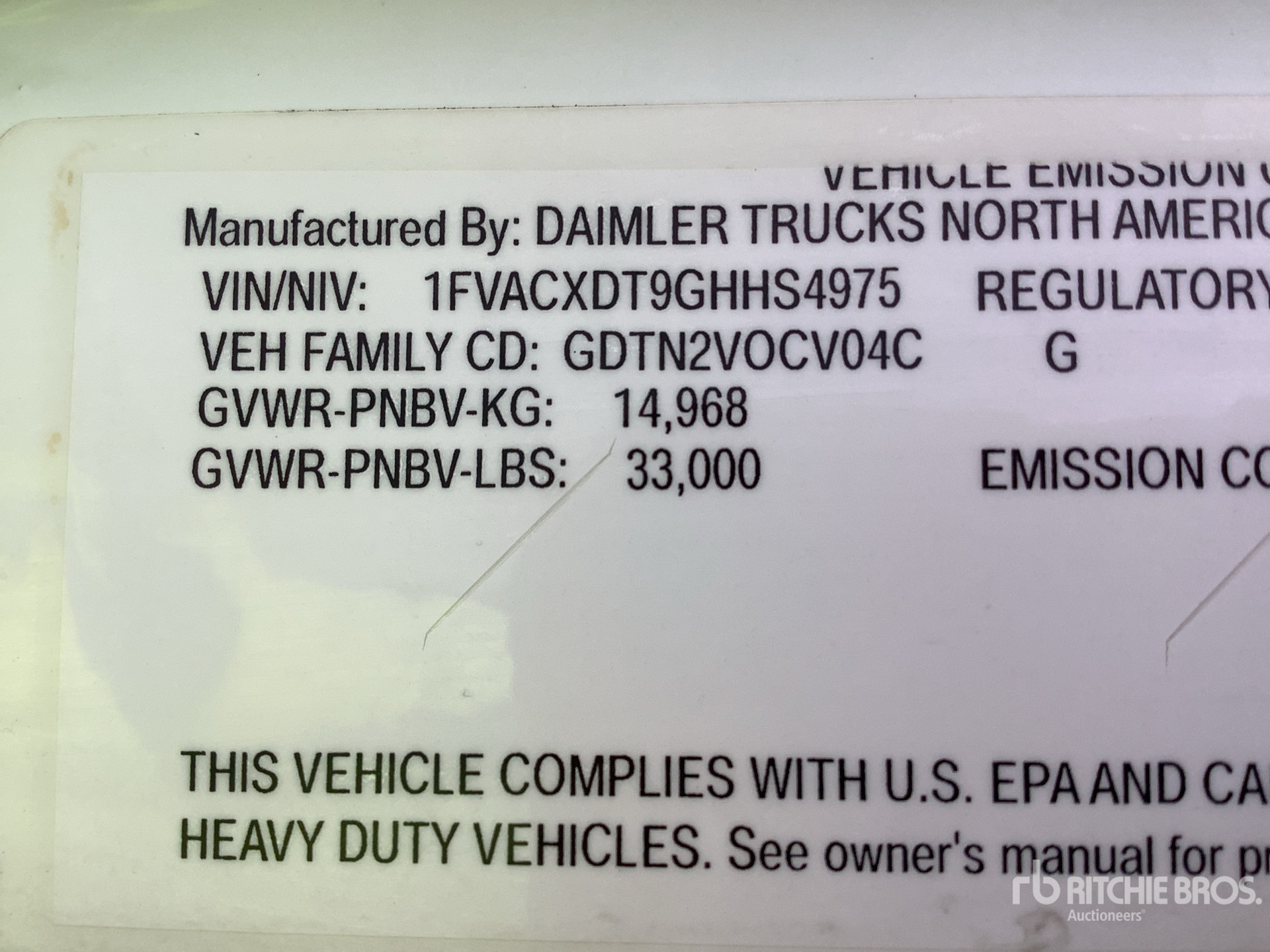 2016 US EPA Label, Requires Diesel Exhaust Fluid