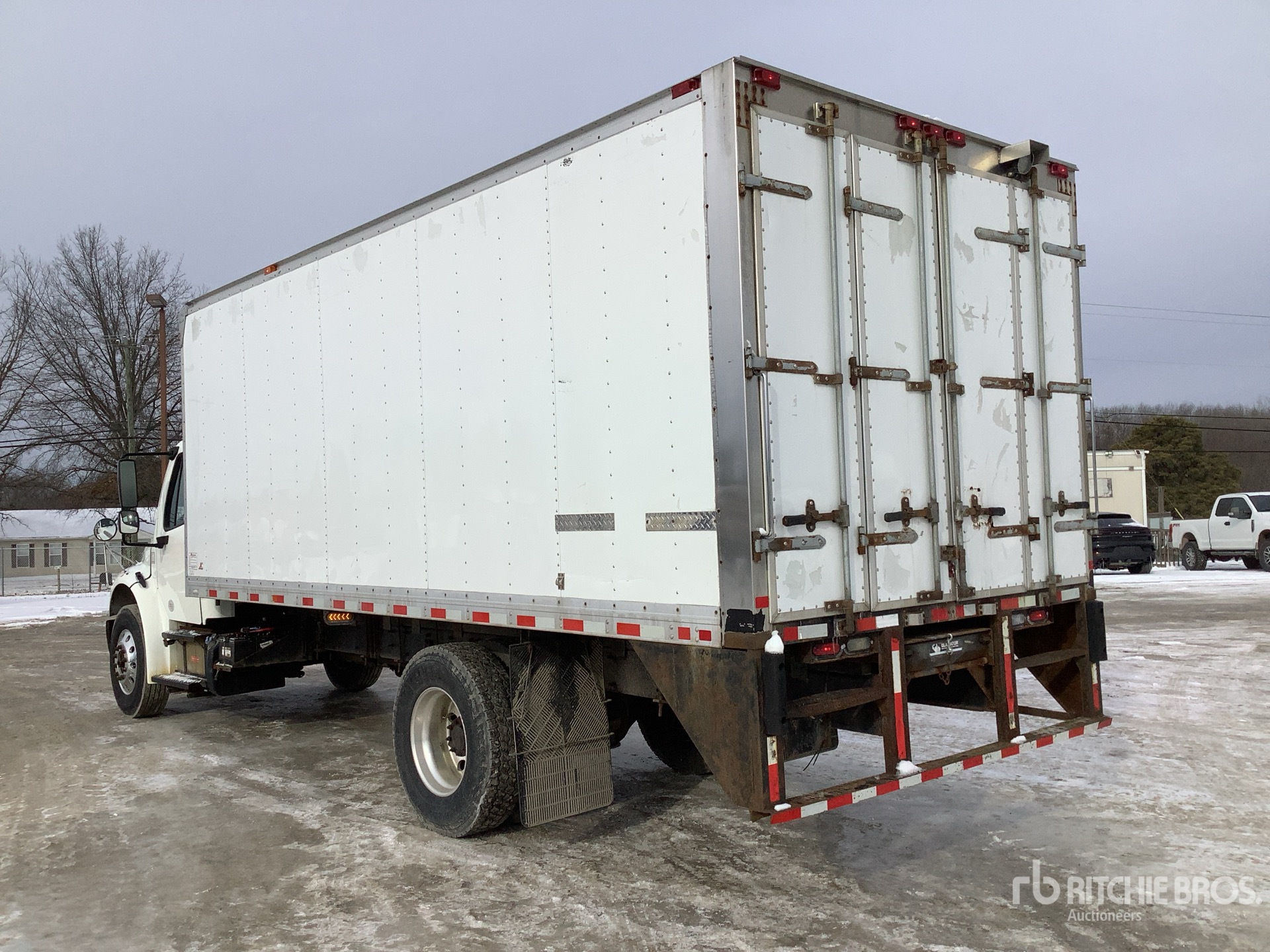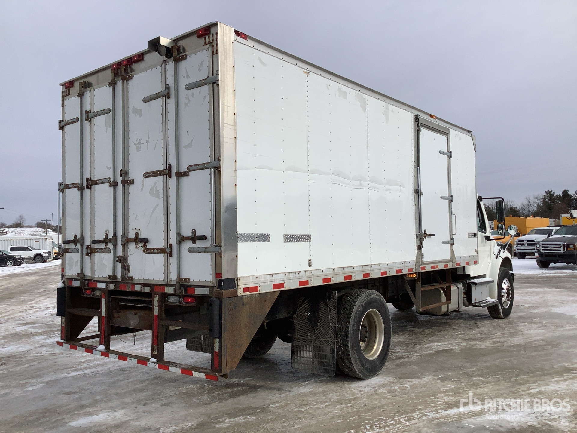 Cummins ISB 6 Cylinder 6.7 L Diesel 260 hp Engine, 2016 US EPA Label, Requires Diesel Exhaust Fluid, 4963 Engine hrs, Allison 2500 6-Speed Automatic Transmission, 12000 lb Front Axle, 21000 lb Rears, Detroit DA-RS-21.0-4 Drive Axles, 5.56:1 Axle Ratio, 33000 lb GVWR, Air Ride Cab, Aluminum Wheels, 11R22.5, Airliner Air Ride Suspension, 216 in Wheelbase, Supreme 20 ft x 102 in Wide x 85 in High Body, Curbside Door, Walk-Up Ramp