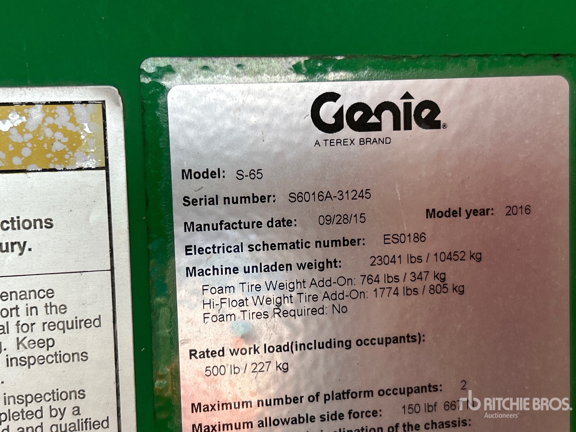 The detailed equipment information is limited in scope, and Ritchie Bros. Auctioneers has not inspected any aspects or components of the equipment other than those expressly set forth herein. Unless expressly stated, we make no representations or warranties, express or implied, concerning the equipment or its components, including without limitation any representations or warranties concerning functionality, conformity or compliance with any safety standard or requirement of any applicable authority or regulatory body, fitness for any particular purpose, or merchantability. You are strongly advised to perform your own detailed inspection of the equipment prior to bidding.