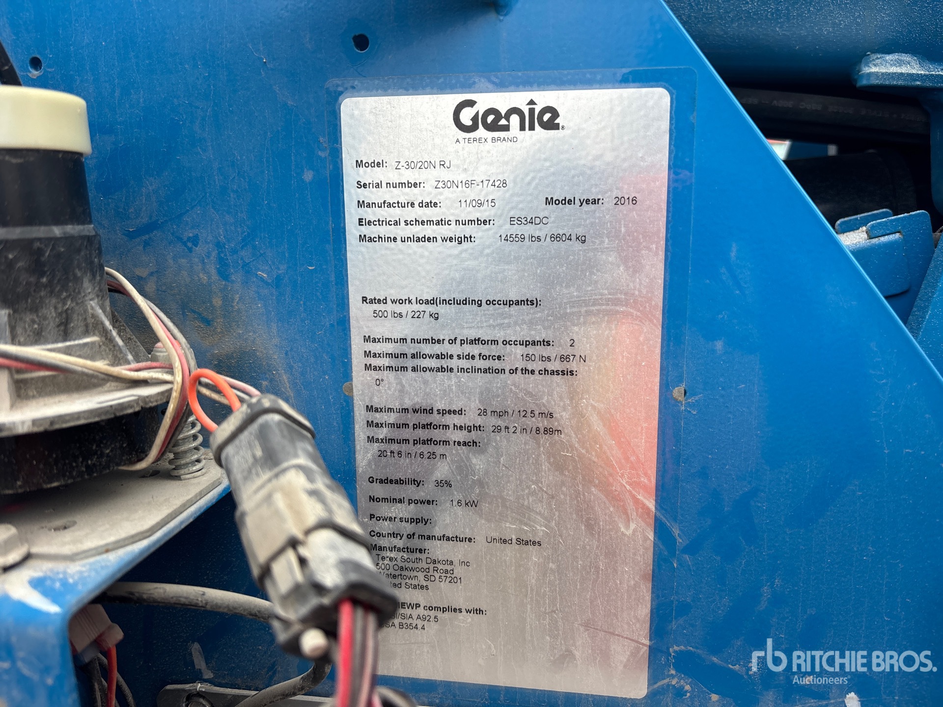 29 ft 2 in Max Platform Height, 500 lb Max Weight Capacity, Jib, Power to Platform, 22 x 7 x 17 3/4 Tires