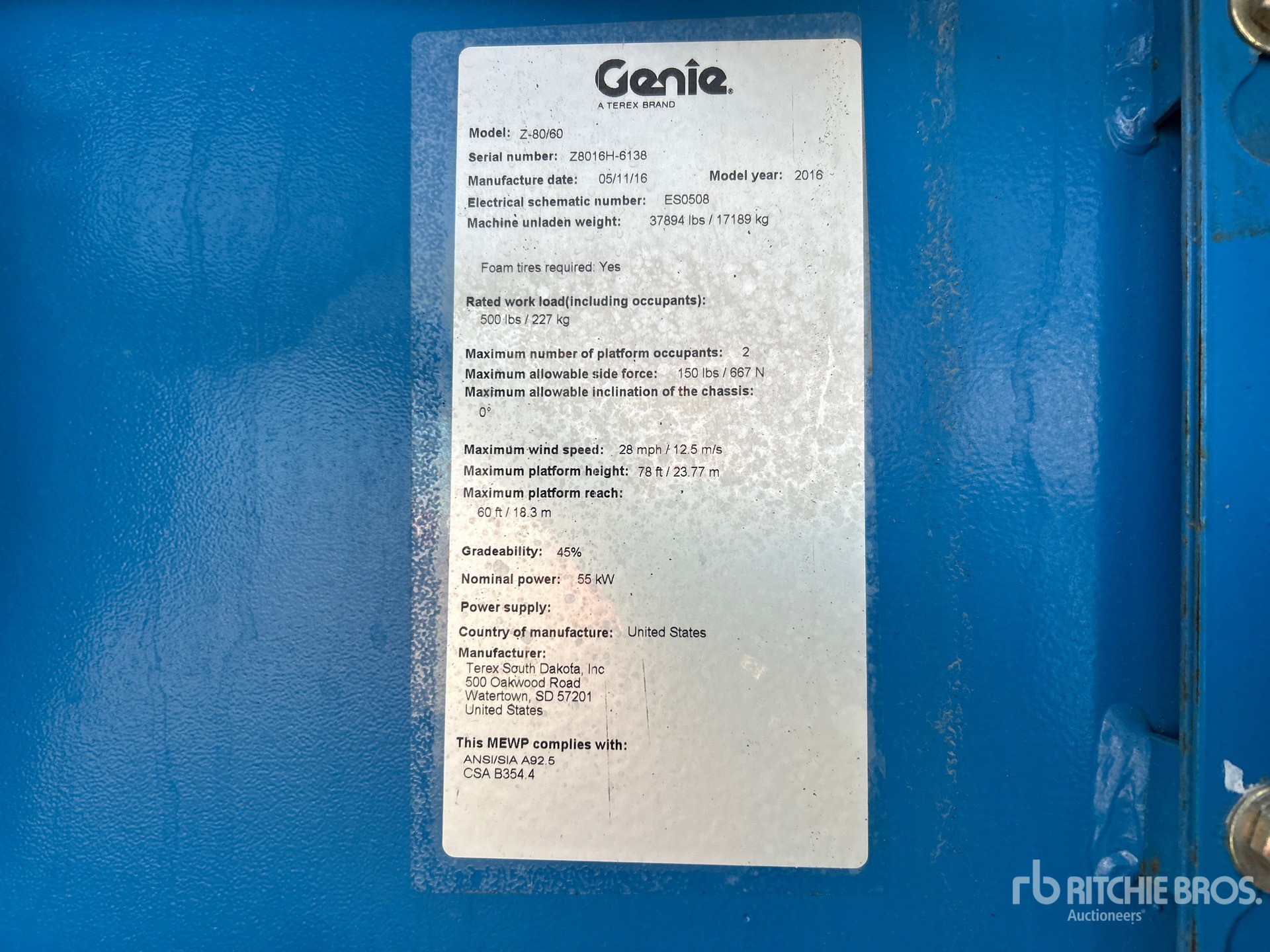 The detailed equipment information is limited in scope, and Ritchie Bros. Auctioneers has not inspected any aspects or components of the equipment other than those expressly set forth herein. Unless expressly stated, we make no representations or warranties, express or implied, concerning the equipment or its components, including without limitation any representations or warranties concerning functionality, conformity or compliance with any safety standard or requirement of any applicable authority or regulatory body, fitness for any particular purpose, or merchantability. You are strongly advised to perform your own detailed inspection of the equipment prior to bidding.