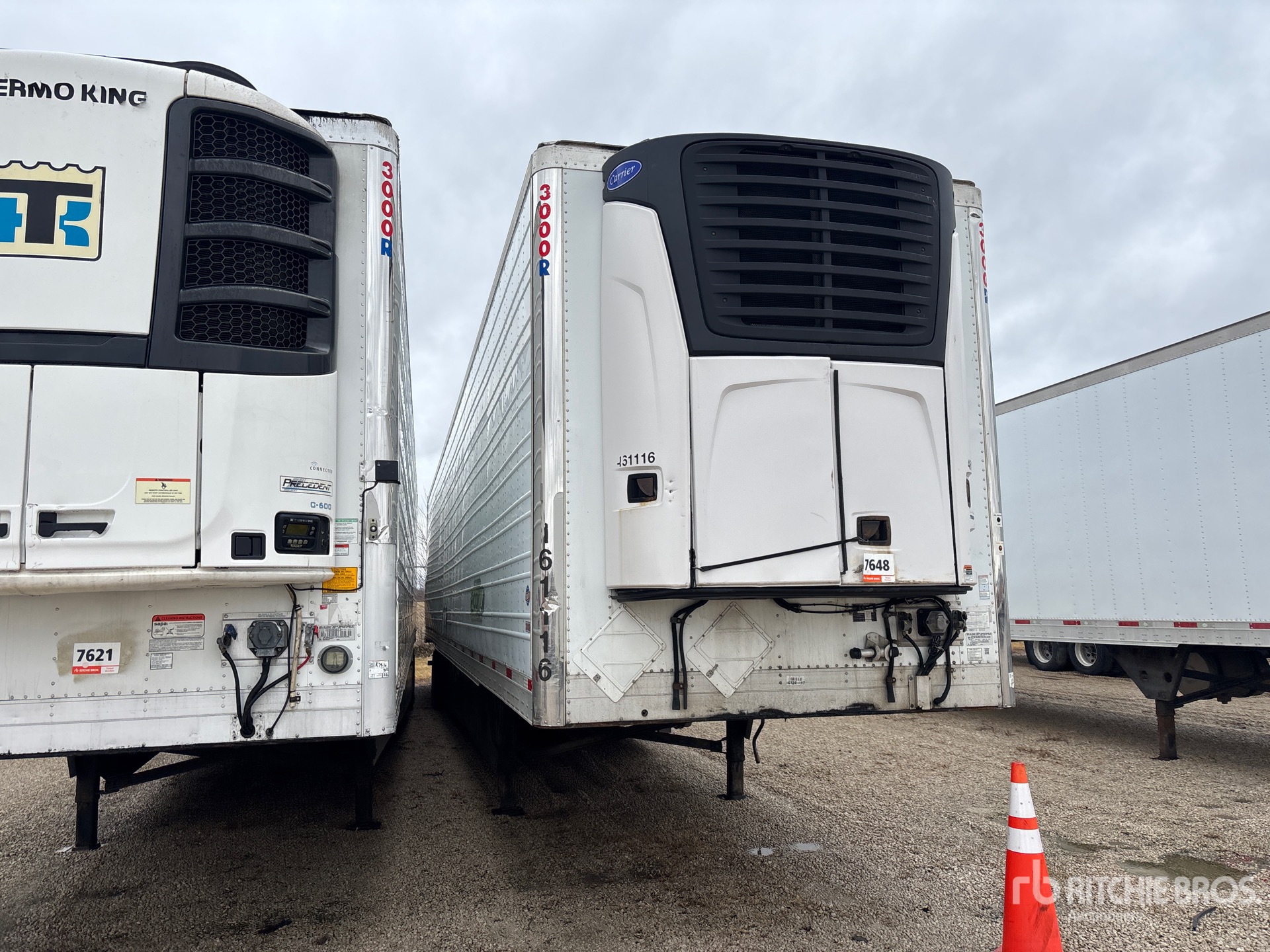 Deficient Components/Systems Include but are not limited to: Engine Section, Electric Section, Other Unable to open left side of reefer compartment.Missing both rear wheels on both sides. Scratches and dents on both sides of the trailer. Passenger side has damage.