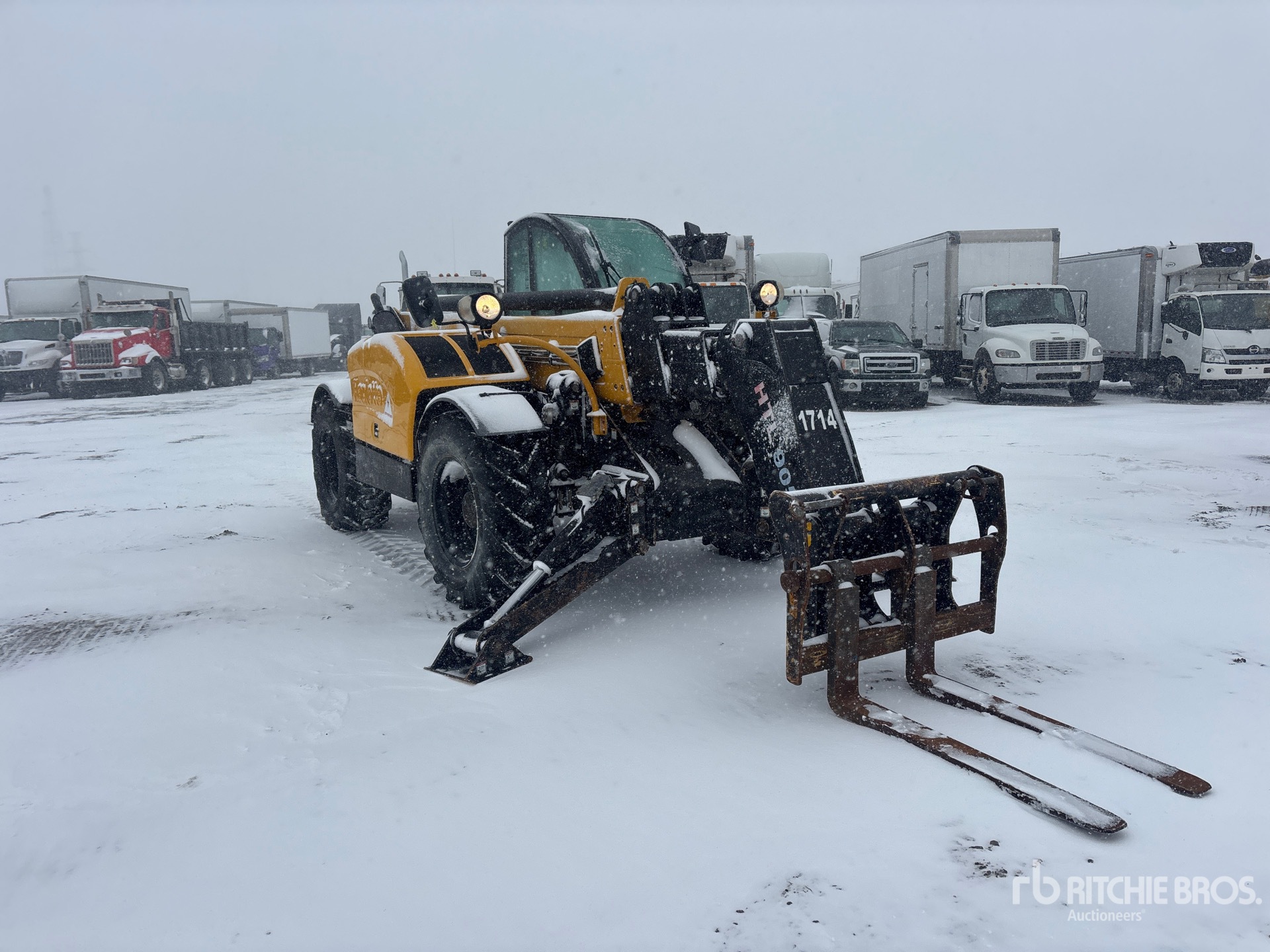 Enclosed Cab, Air Ride Seat, Load Moment Indicator, 50 ft Max Lift Height, 9000 lb Max Lift Capacity, 48 in Forks, Outriggers, 15.5/80-24 IMP Tires