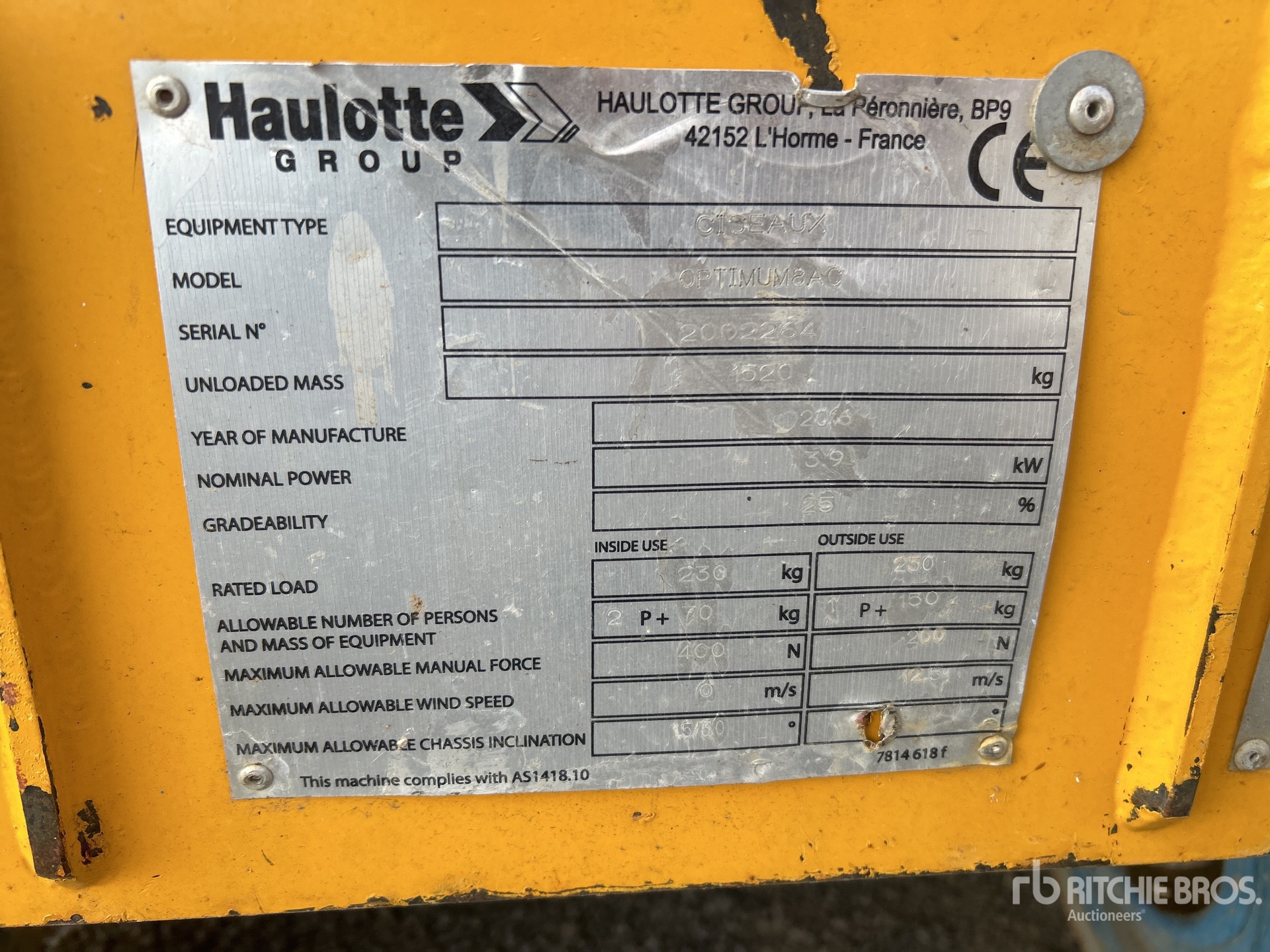 A qualified Ritchie Bros. employee collected detailed equipment information and performed functional tests on the key components of this asset. You, or a proxy, may also inspect any items on site prior to bidding on auction day.