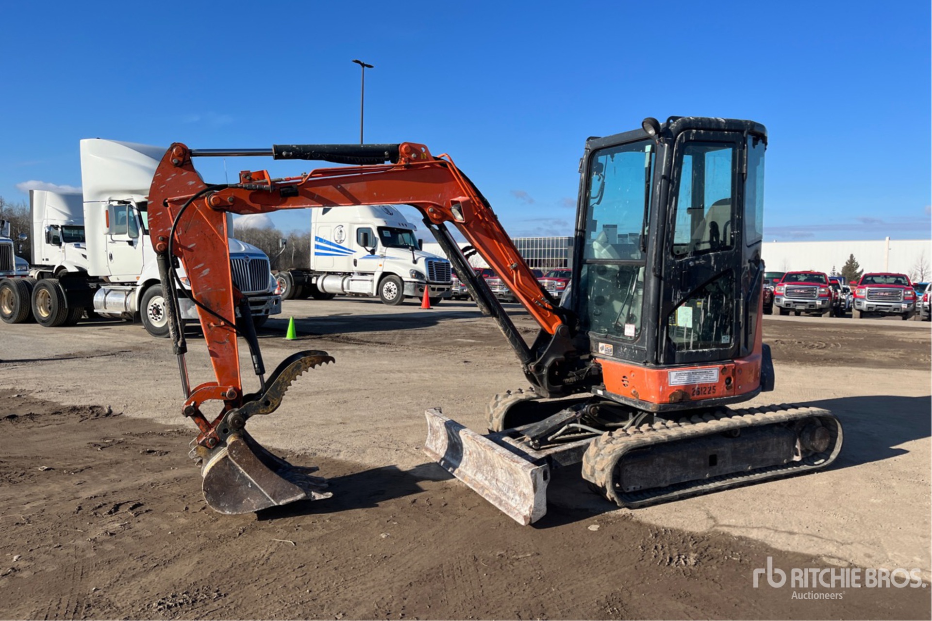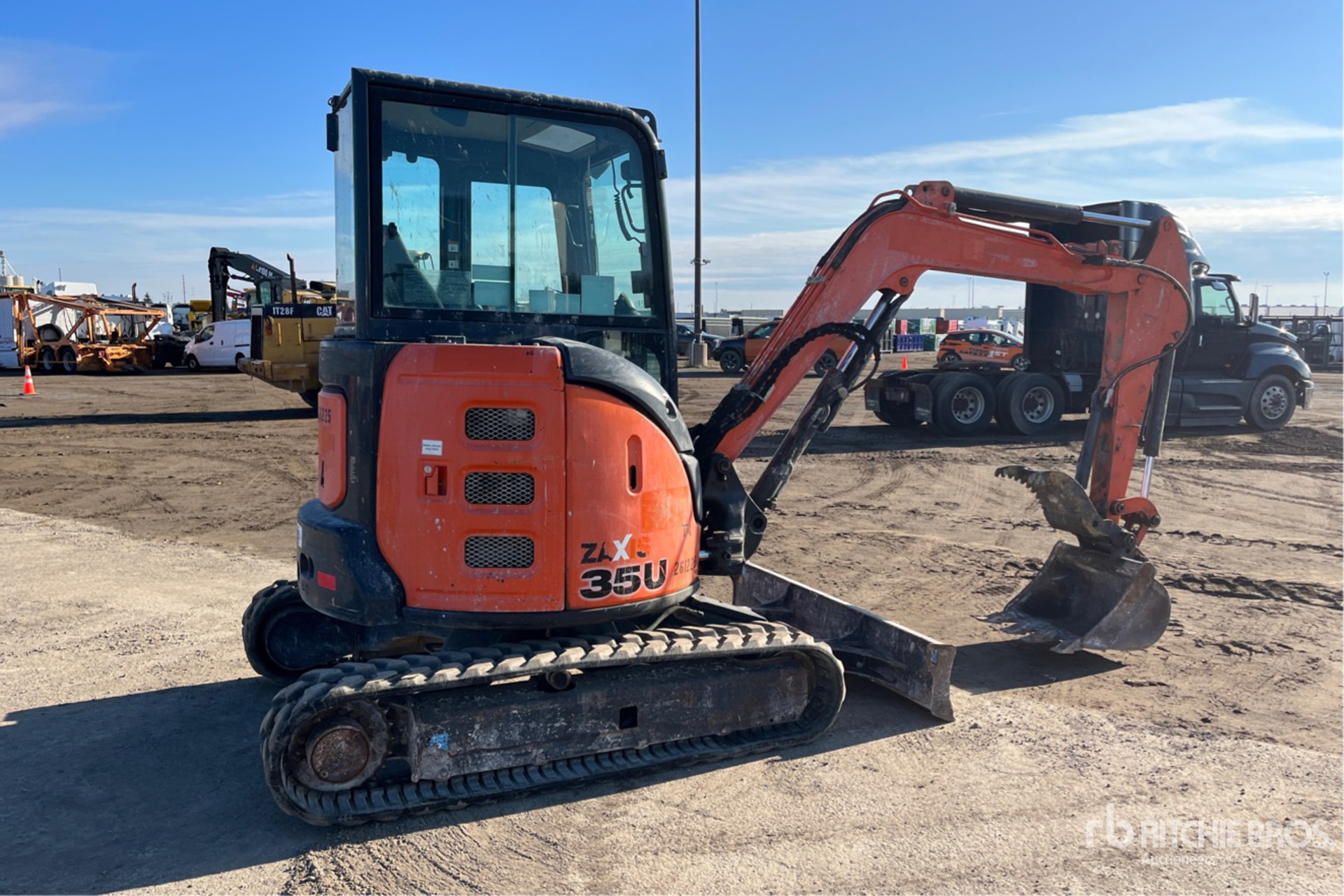 Enclosed Cab, Air Conditioner, Swing Boom, 4 ft 4 in Stick, Backfill Blade, 12 in Rubber Tracks, Manual Quick Coupler, 24 in Digging Bucket, Hydraulic Thumb
