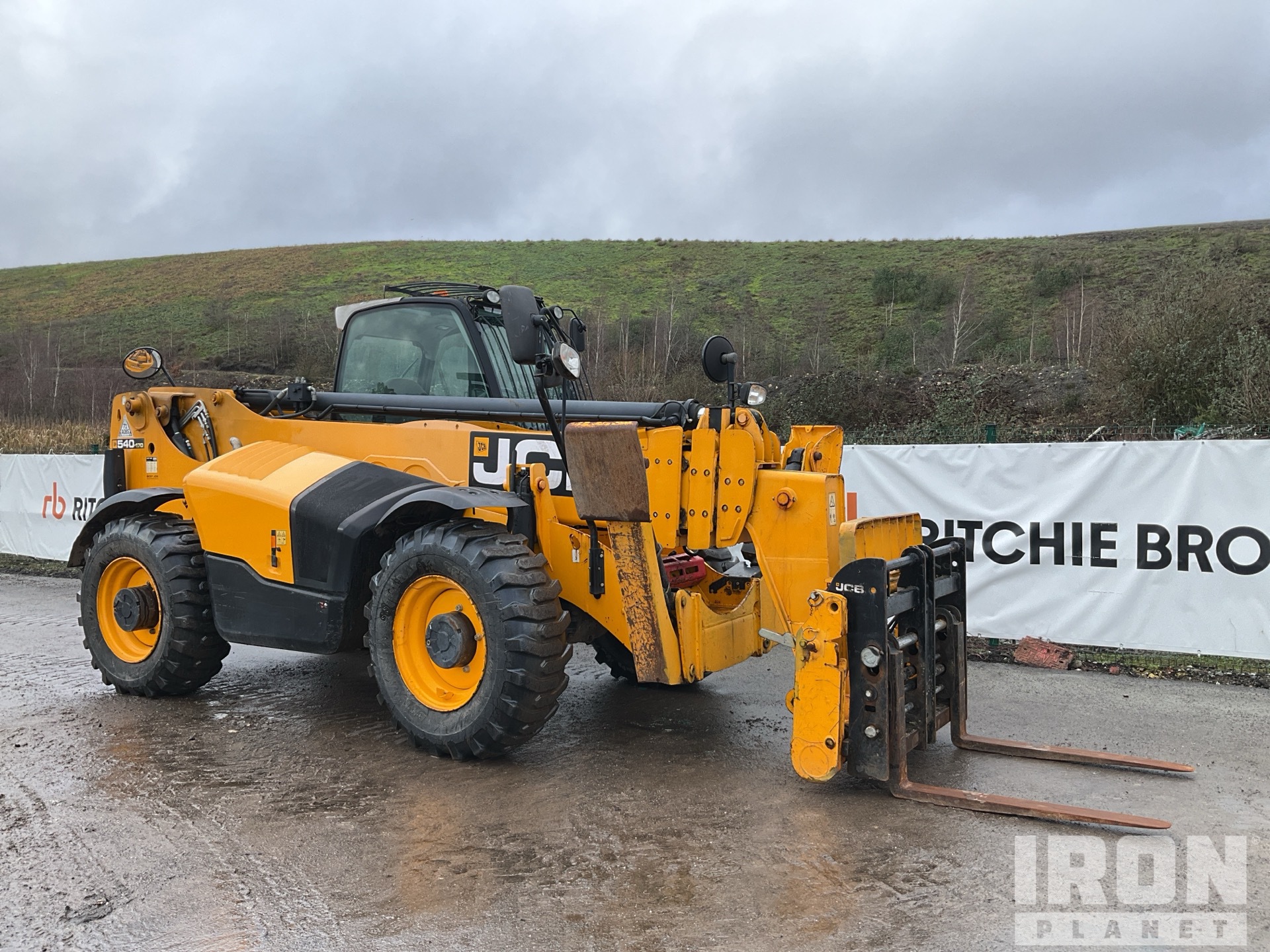 Enclosed Cab, Air Conditioner, Rear View Camera, Load Moment Indicator, 16.70 m Max Lift Height, 4000 kg Max Lift Capacity, Requires AdBlue, 1060 mm Forks, Fork Positioner, Manual Coupler, Outriggers, Frame Leveling, Auxiliary Hydraulic Plumbing, 15.5-25 Tires