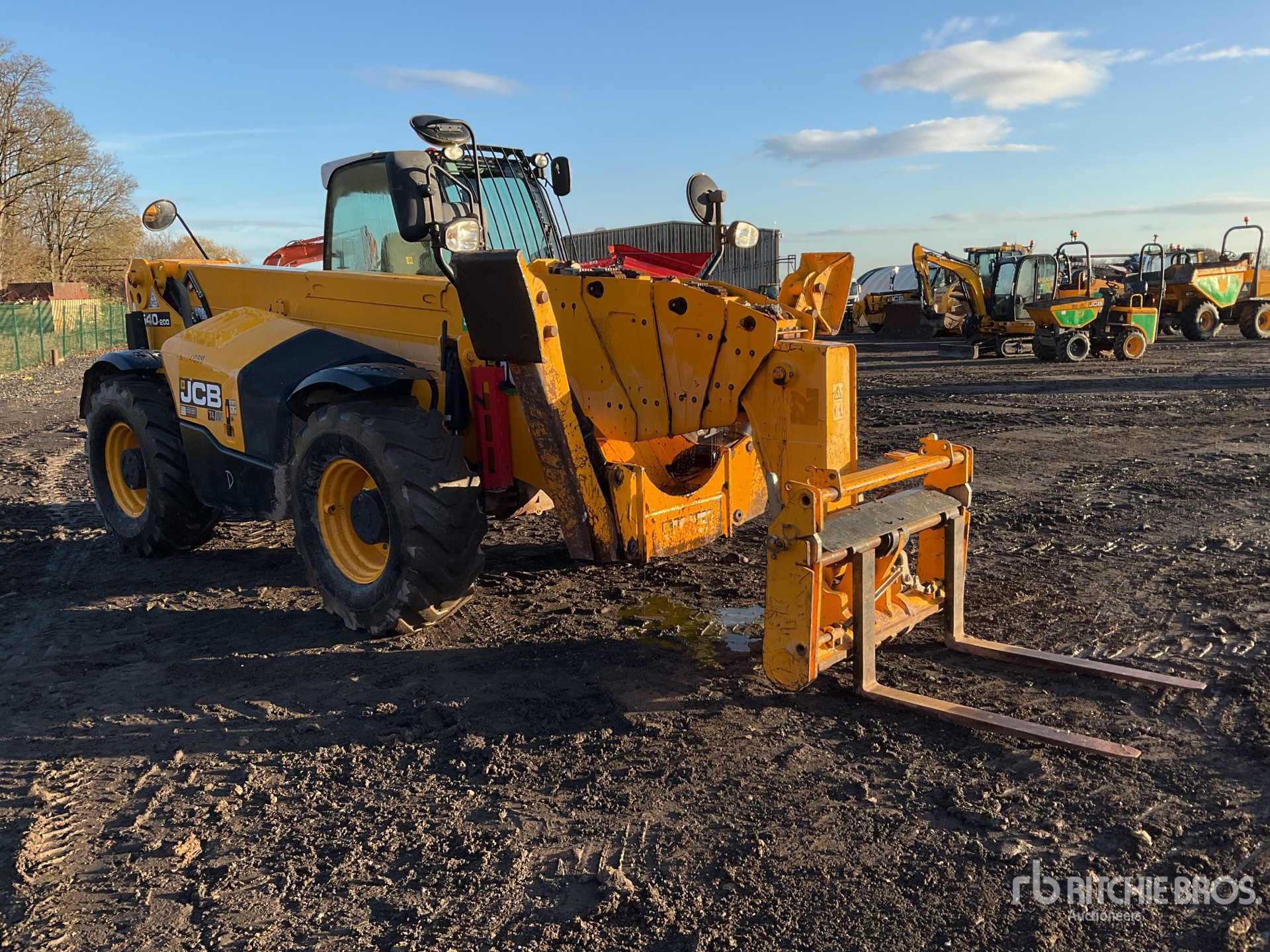Enclosed Cab, Rear View Camera, Load Moment Indicator, 20 m Max Lift Height, 4000 kg Max Lift Capacity, 2016 US EPA Label, 1060 mm Forks, Side Shift, Manual Coupler, Outriggers, Frame Leveling, Auxiliary Hydraulic Plumbing, 440/80-24 Tires