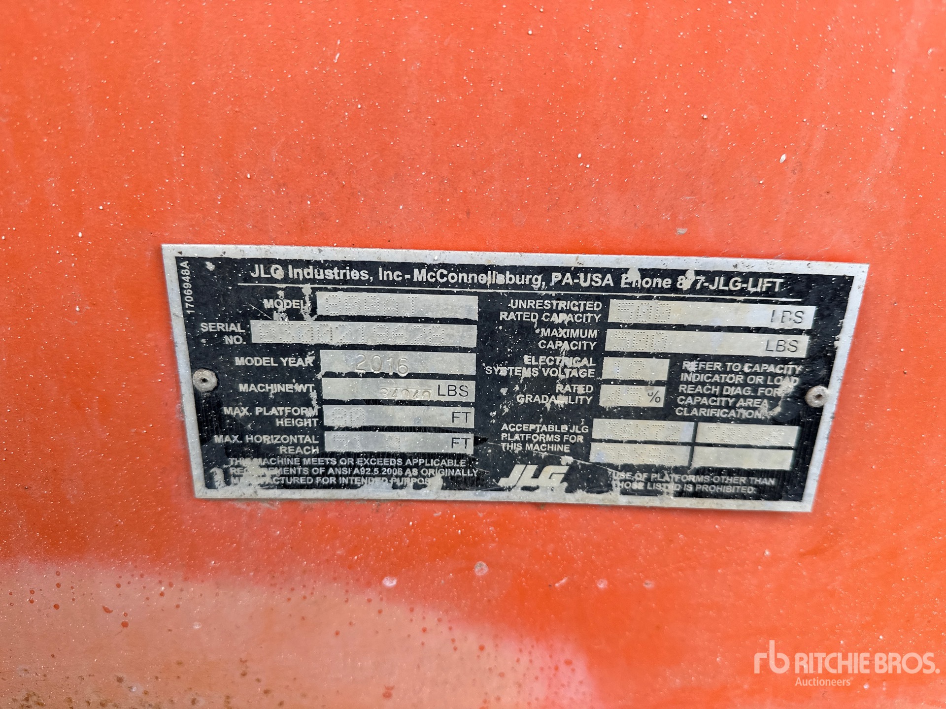 Located in Lane 69 Spot 29, 80 ft Max Platform Height, 500 lb Max Weight Capacity, Jib, Power to Platform, 2016 US EPA Label, Deutz TD 2.9 L4 4 Cylinder 50 kW 2.9 L Diesel Engine, 15-625 Tires