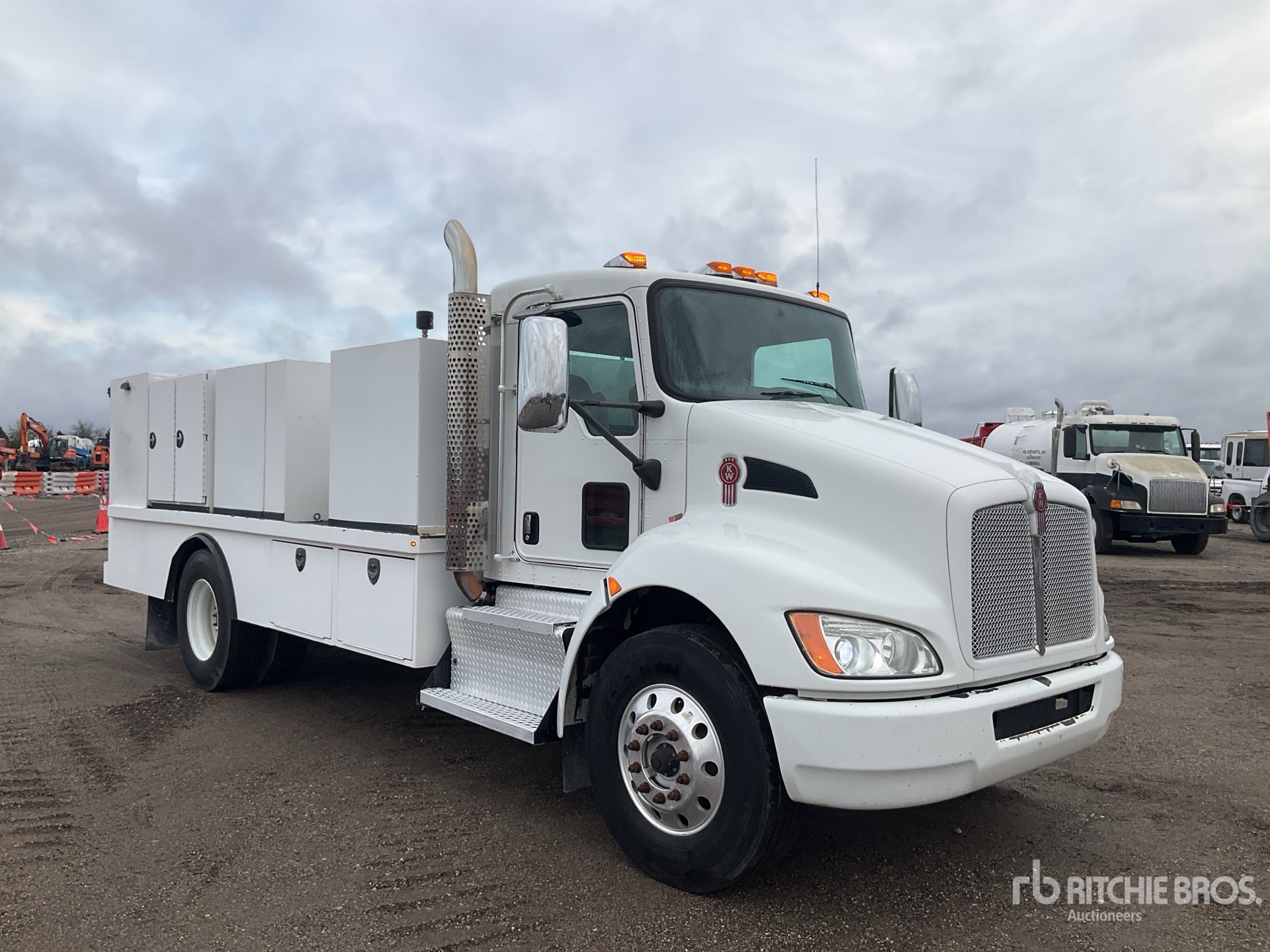 Paccar PX-7 6 Cylinder 7.3 L Diesel 325 hp Engine, 2015 US EPA Label, 15366.6 Engine hrs, Engine Brake, Allison 3000 Automated Transmission, Differential Lock, 12000 lb Front Axle, 21000 lb Rears, Dana S21-170 Drive Axles, 5.38:1 Axle Ratio, 33000 lb GVWR, Aluminum Front Wheels, 11R22.5 Front Tires, 11R22.5 Rear Tires, Spring Suspension, 188 in Wheelbase, 17 ft 3 in Body, ( 3 ) Oil Tanks, ( 1 ) Coolant Tank, ( 1 ) Waste Coolant Tank, ( 9 ) Hose Reels, Hydraulic Hose Reel, Welder