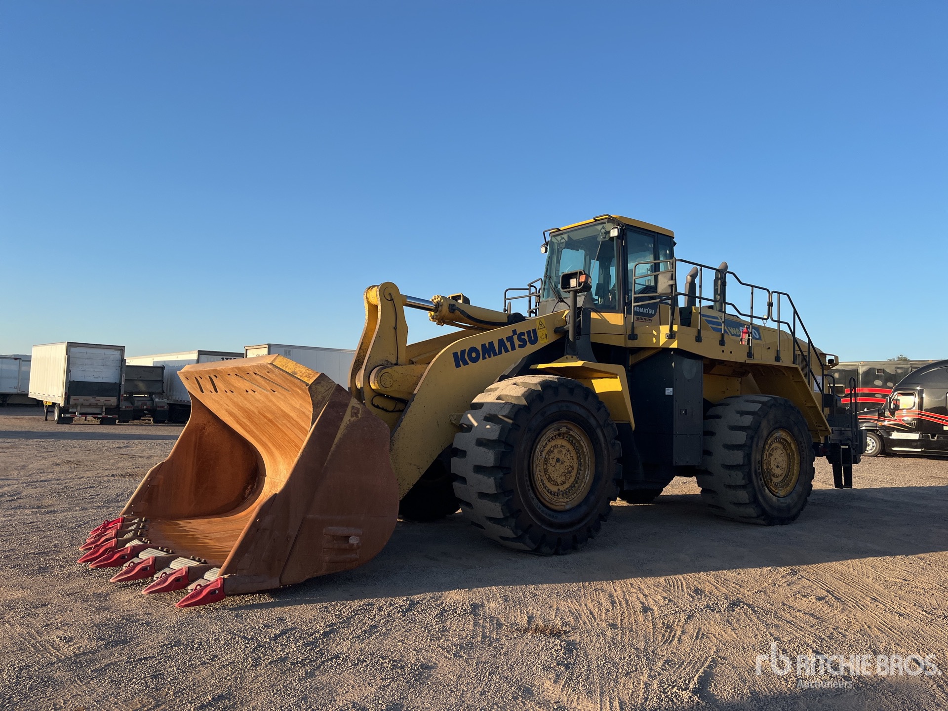 Enclosed Cab, Air Conditioner, Rear View Camera, Air Ride Seat, Ride Control, Joystick Steering, Traction Control, Loadrite On-Board Scale, Requires Diesel Exhaust Fluid, Manual Coupler, 9.2 cyd 150 in Spade Nose Bucket, Auto Lube, Fast Fuel System, 35/65R33 Tires