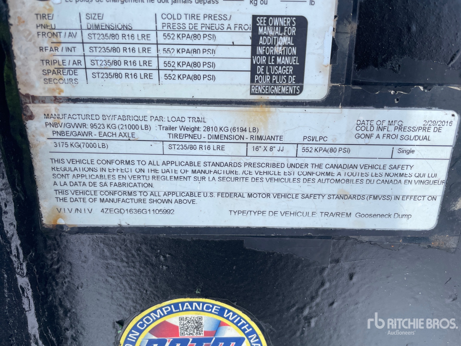 The detailed equipment information is limited in scope, and Ritchie Bros. Auctioneers has not inspected any aspects or components of the equipment other than those expressly set forth herein. Unless expressly stated, we make no representations or warranties, express or implied, concerning the equipment or its components, including without limitation any representations or warranties concerning functionality, conformity or compliance with any safety standard or requirement of any applicable authority or regulatory body, fitness for any particular purpose, or merchantability. You are strongly advised to perform your own detailed inspection of the equipment prior to bidding.