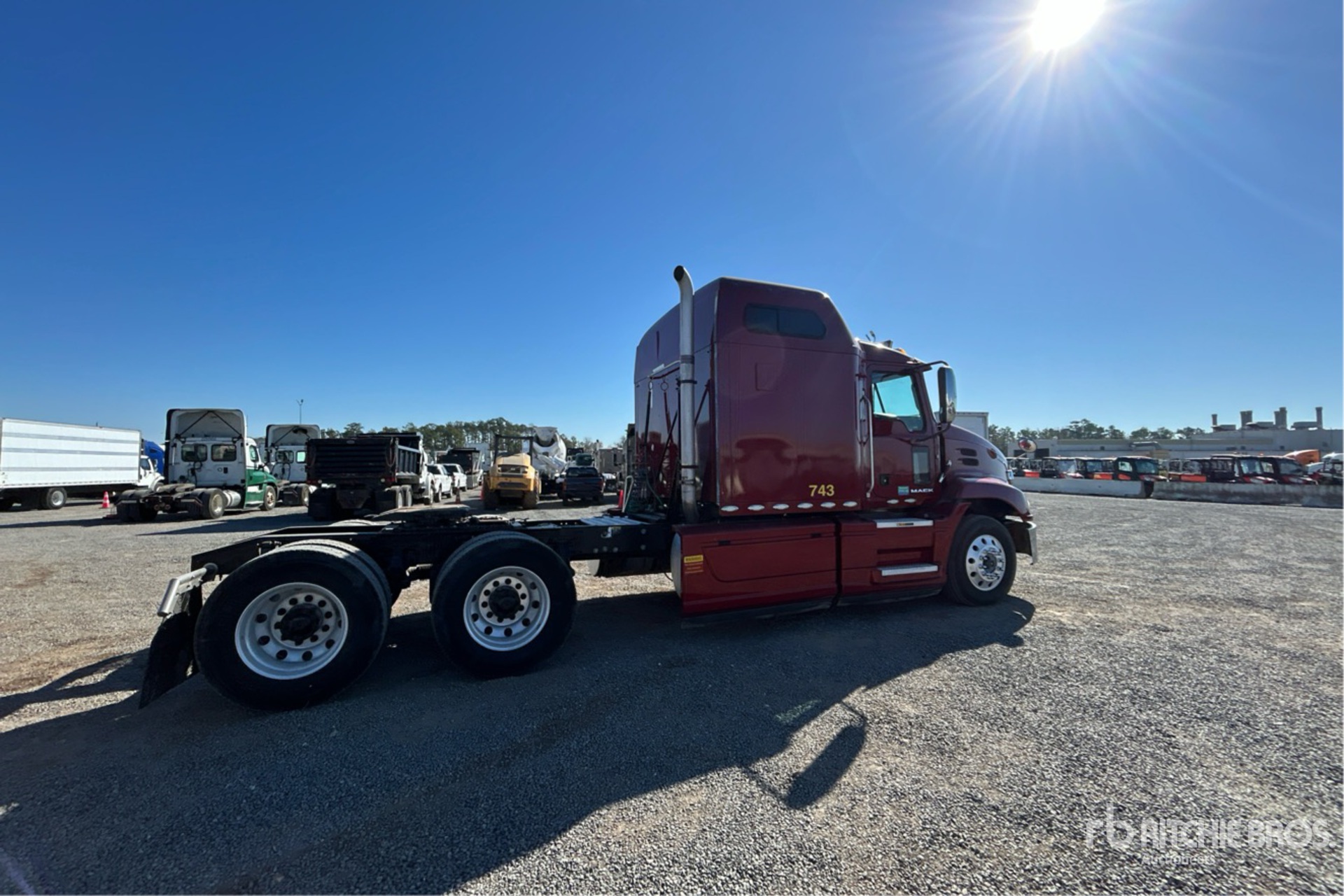 Located in Lane 28 Spot 13, Mack MP8 445 hp Engine, 2015 US EPA Label, Mack mDrive Automated Transmission, 12000 lb Front Axle, 40000 lb Rears, 52000 lb GVWR, Engine Brake, 56 in Mid Roof Sleeper Cab, 224 in Wheelbase, Air Suspension, Aluminum Outer Wheels, 295/75R22.5, Air Sliding 5th Wheel, Dual Fuel Tanks