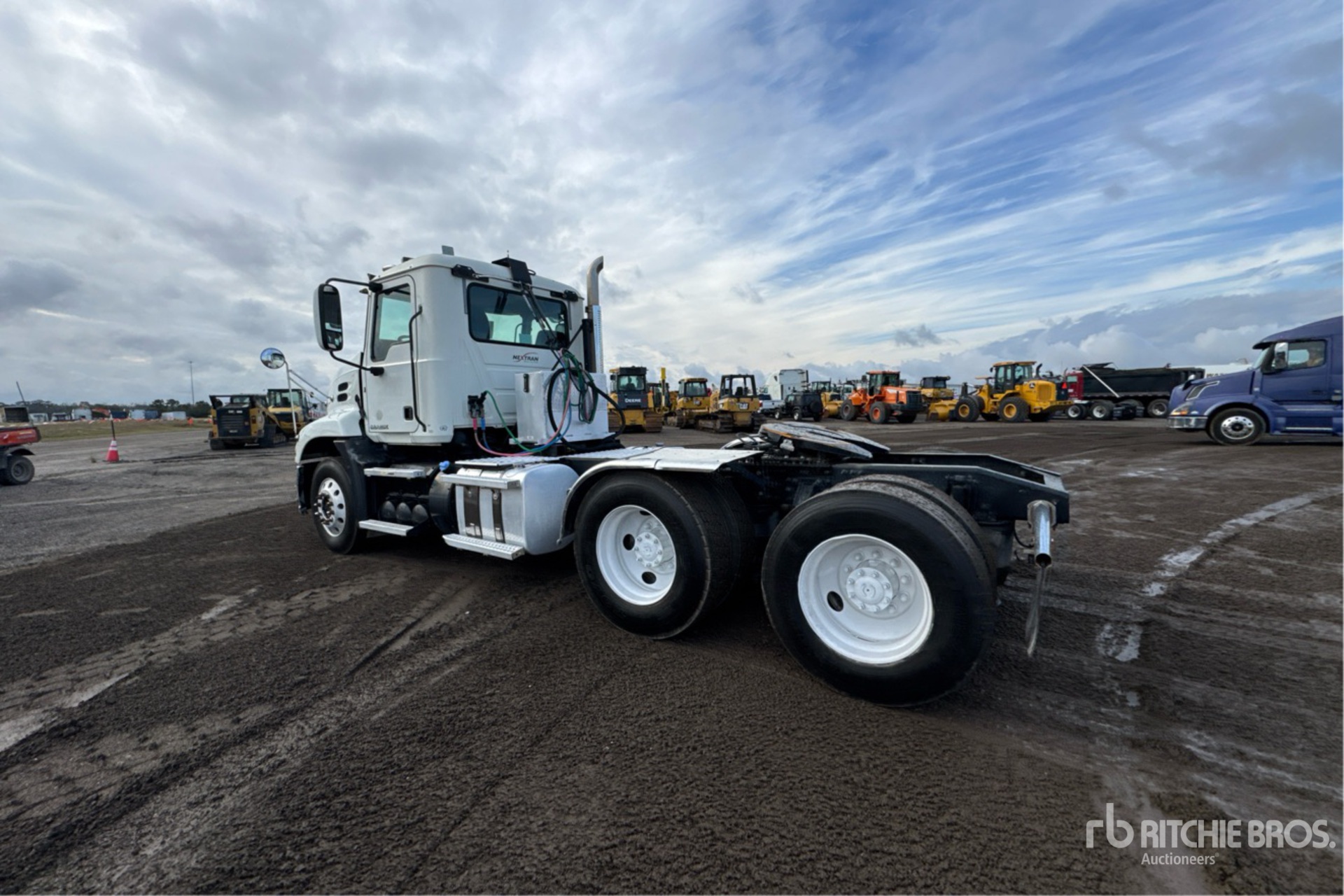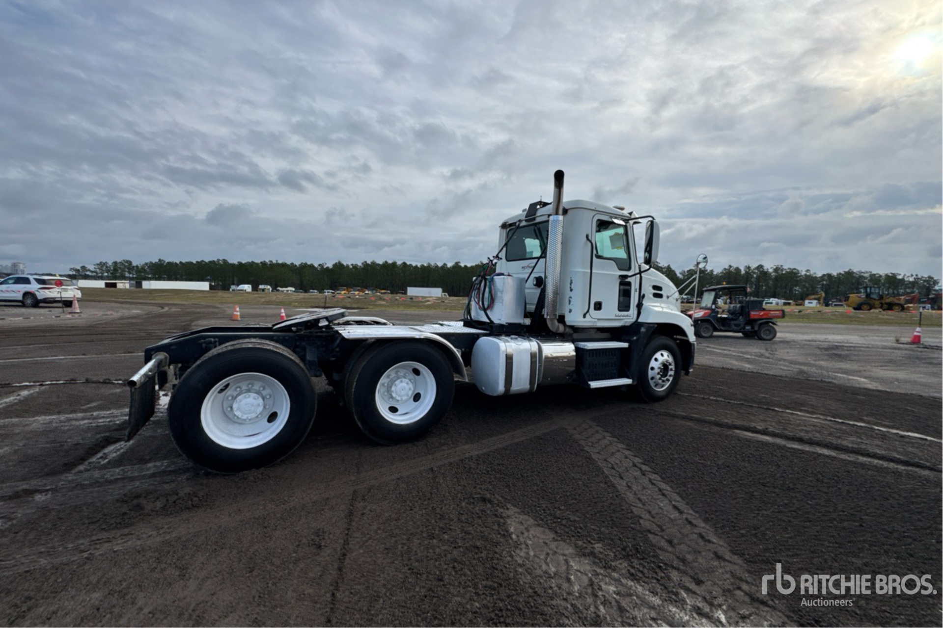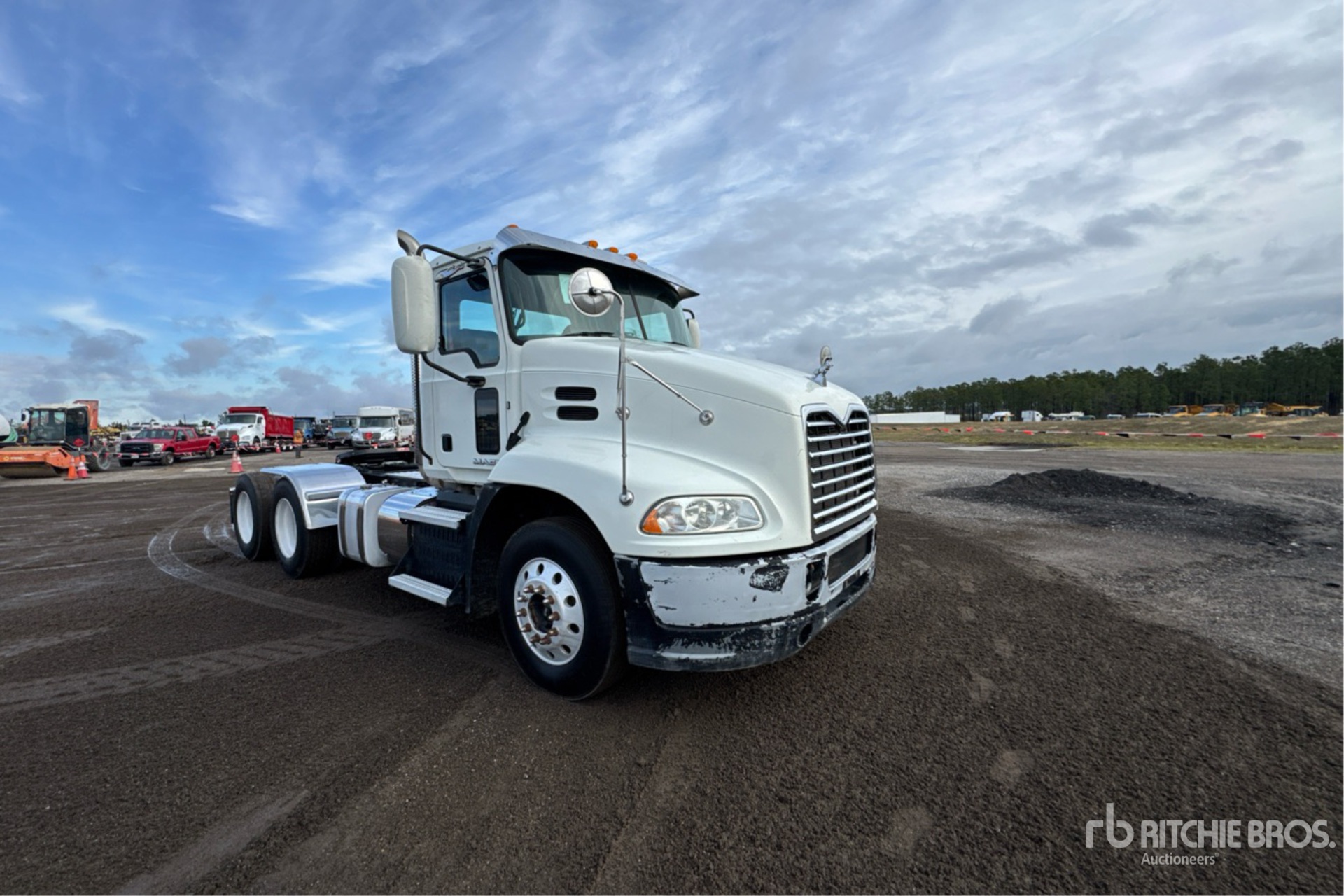 Mack MP7 395 hp Engine, Mack mDrive 12-Speed Automated Transmission 12000 lb Front Axle, 40000 lb Rears, 52000 lb GVWR, Engine Brake, 180 in Wheelbase, Air Suspension, Aluminum Front Wheels, 295/75R22.5 Front Tires, 295/75R22.5 Rear Tires, Wet Kit, Air Sliding 5th Wheel, Dual Fuel Tanks
