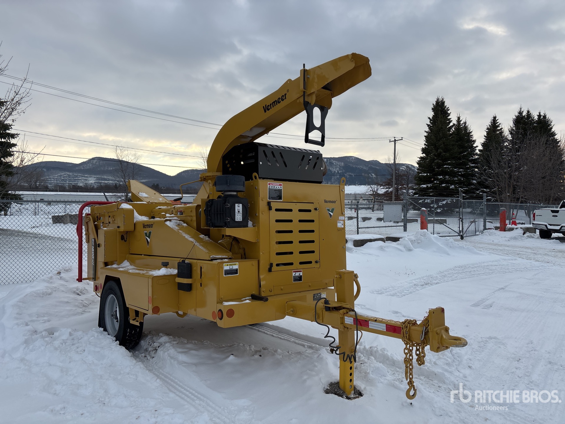 Cummins 4 Cylinder 3.8 L Diesel Engine, 24 in Feed Opening, Swivel Discharge Chute, Loading Winch, Lunette Ring Carrier Trailer, Electric Brakes, Includes Remote Control for Winch