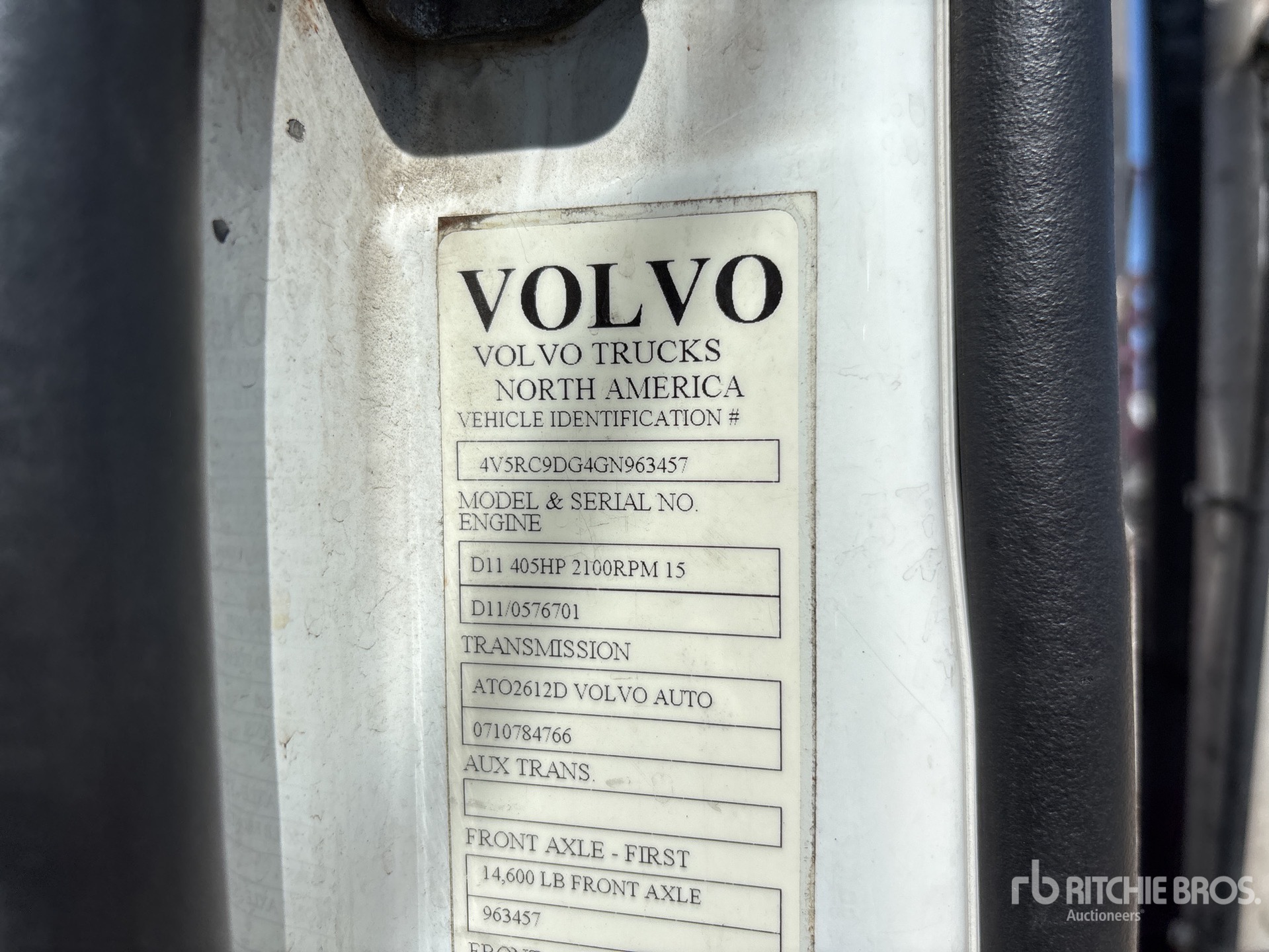 Volvo D11J405 10.8 L Diesel 405 hp Engine, 2015 US EPA Label, Requires Diesel Exhaust Fluid, Volvo ATO2612D Automated Transmission, 14600 lb Front Axle, 38000 lb Rears, 47000 lb GVWR, Aluminum Wheels, 295/75R22.5 Front Tires, 285/70R19.5 Rear Tires, Air Ride Suspension, 252 in Wheelbase, 3 Vehicle Capacity, Hydraulic Lift, Soft Tie Downs, SOLD WITH - 2015 Cottrell T/A, Trailer S/N - 5E0AA1447GG817407, Soft Ties, Aluminum Wheels, 285/70R19.5 Tires, 47000 lb GVWR