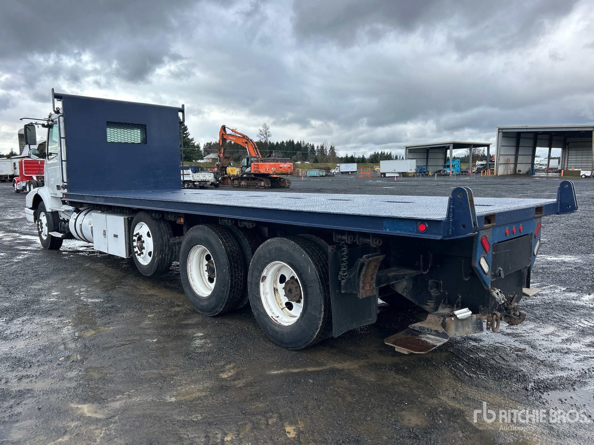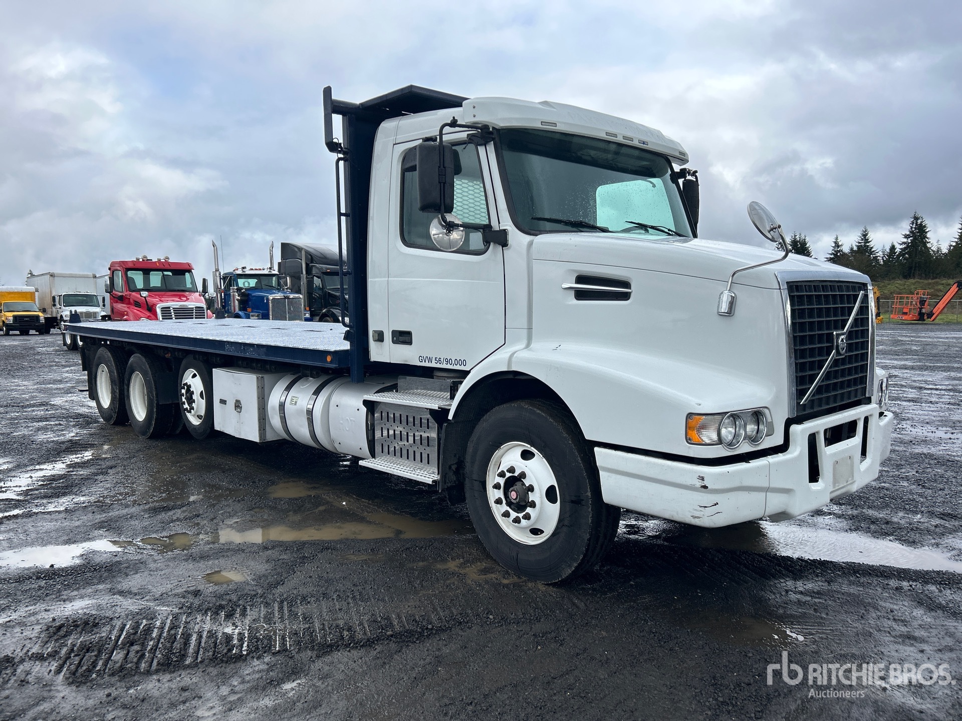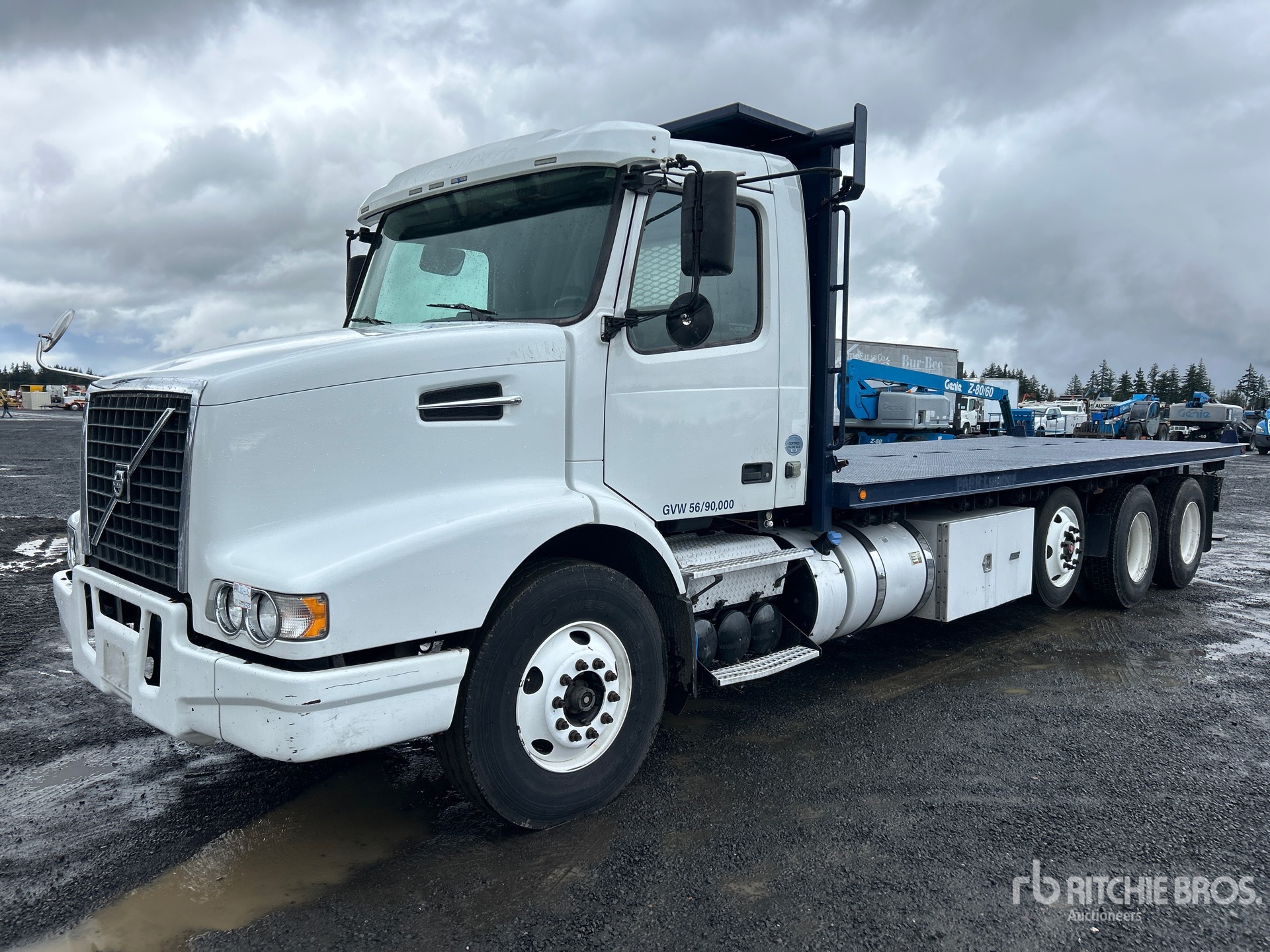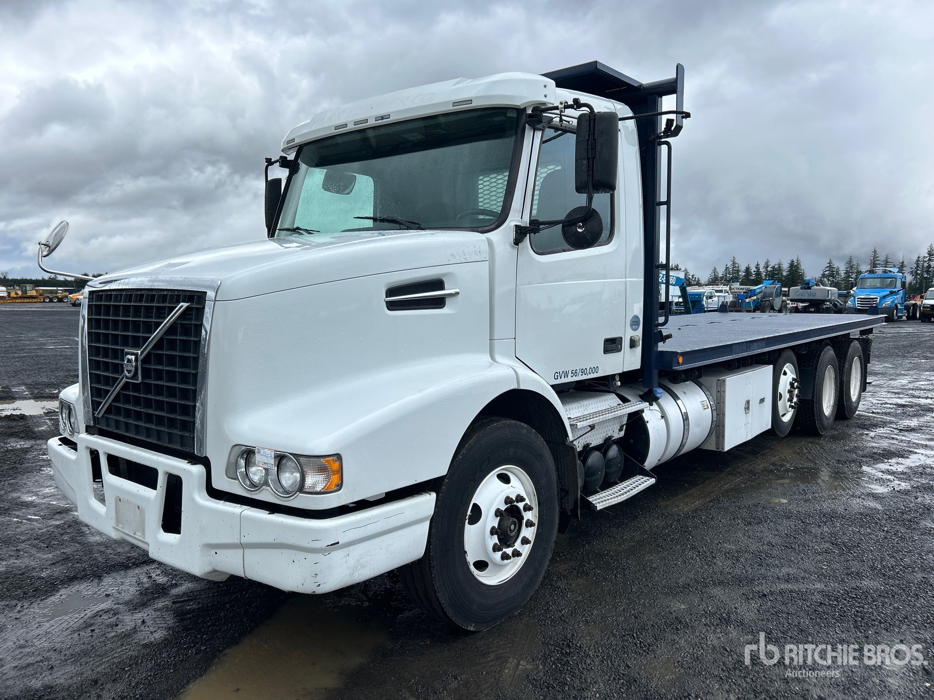 Volvo D13J500 6 Cylinder 12.8 cid Diesel 500 hp Engine, 2015 US EPA Label, Requires Diesel Exhaust Fluid, 9159 Engine hrs, Volvo ATO2612D Automated Transmission, 14600 lb Front Axle, 51020 lb Rears, 65620 lb GVWR, 12R22.5 Front Tires, 11R22.5 Rear Tires, Air Ride Suspension, 275 in Wheelbase, 24 ft 5 in x 102 in Bed, Forklift Mount Kit