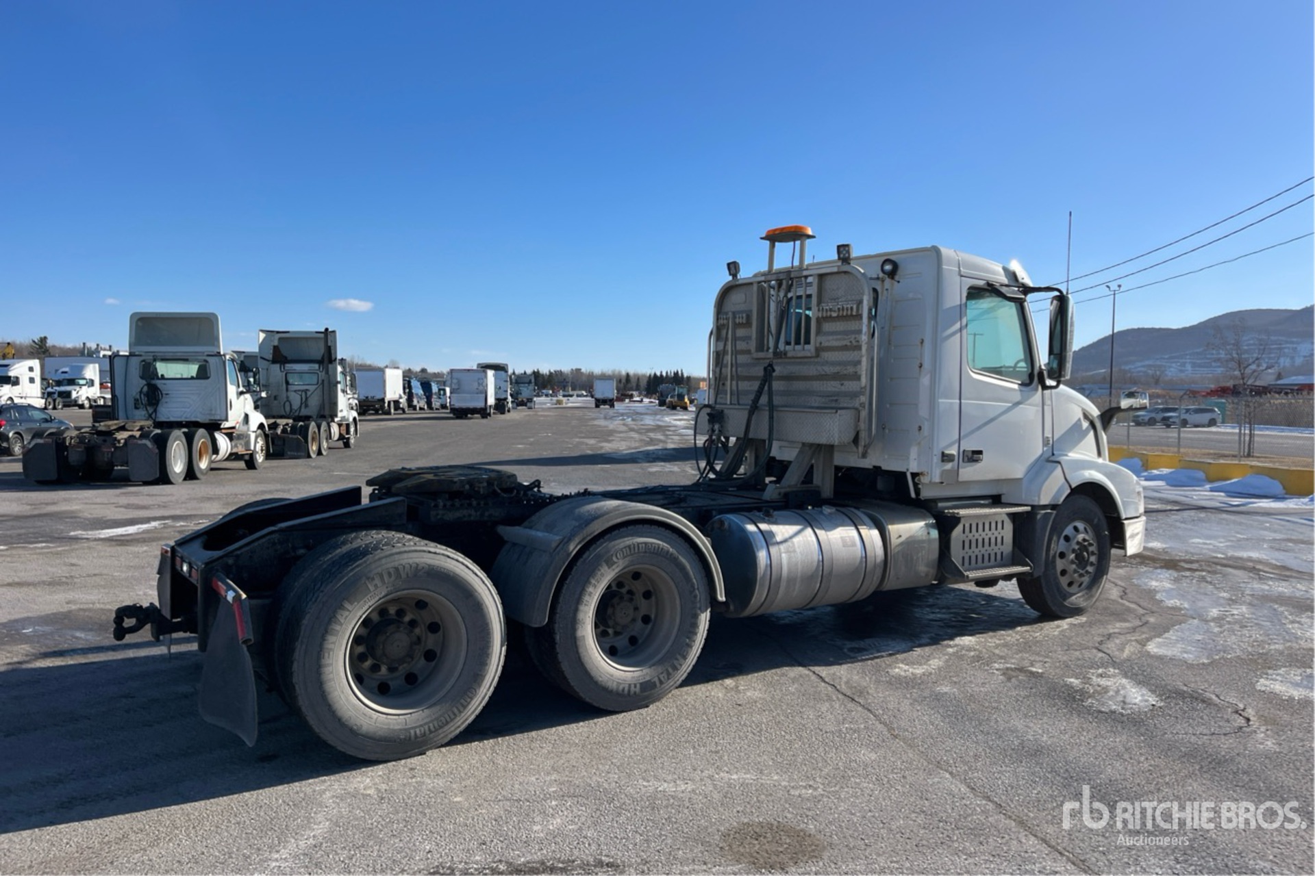 Volvo D13J455 6 Cylinder 12.8 L Diesel 455 hp Engine, 2015 US EPA Label, 13187 Engine hrs, Engine Brake, Automatic Transmission, Differential Lock, 12350 lb Front Axle, 40000 lb Rears, 23746 kg GVWR, Air Ride Cab, Aluminum Wheels, 11R22.5 Front Tires, 11R22.5 Rear Tires, Air Ride Suspension, 198 in Wheelbase, Air Sliding 5th Wheel, Headache Rack
