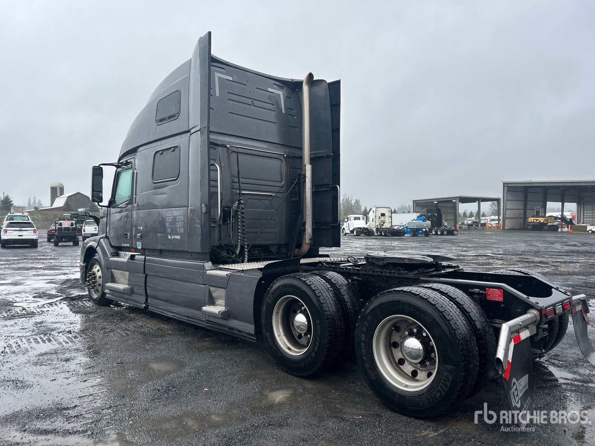 Volvo D13 500 hp Engine, 7680 Engine hrs, Volvo ATO2612D 12-Speed Automated Transmission, 13200 lb Front Axle, 38000 lb Rears, 51200 lb GVWR, Engine Brake, 77 in High Rise Sleeper Cab, Bunk Beds, 242 in Wheelbase, Air Suspension, Aluminum Wheels, 295/75R22.5 Front Tires, 275/80R22.5 Rear Tires, Air Sliding 5th Wheel, Dual Fuel Tanks