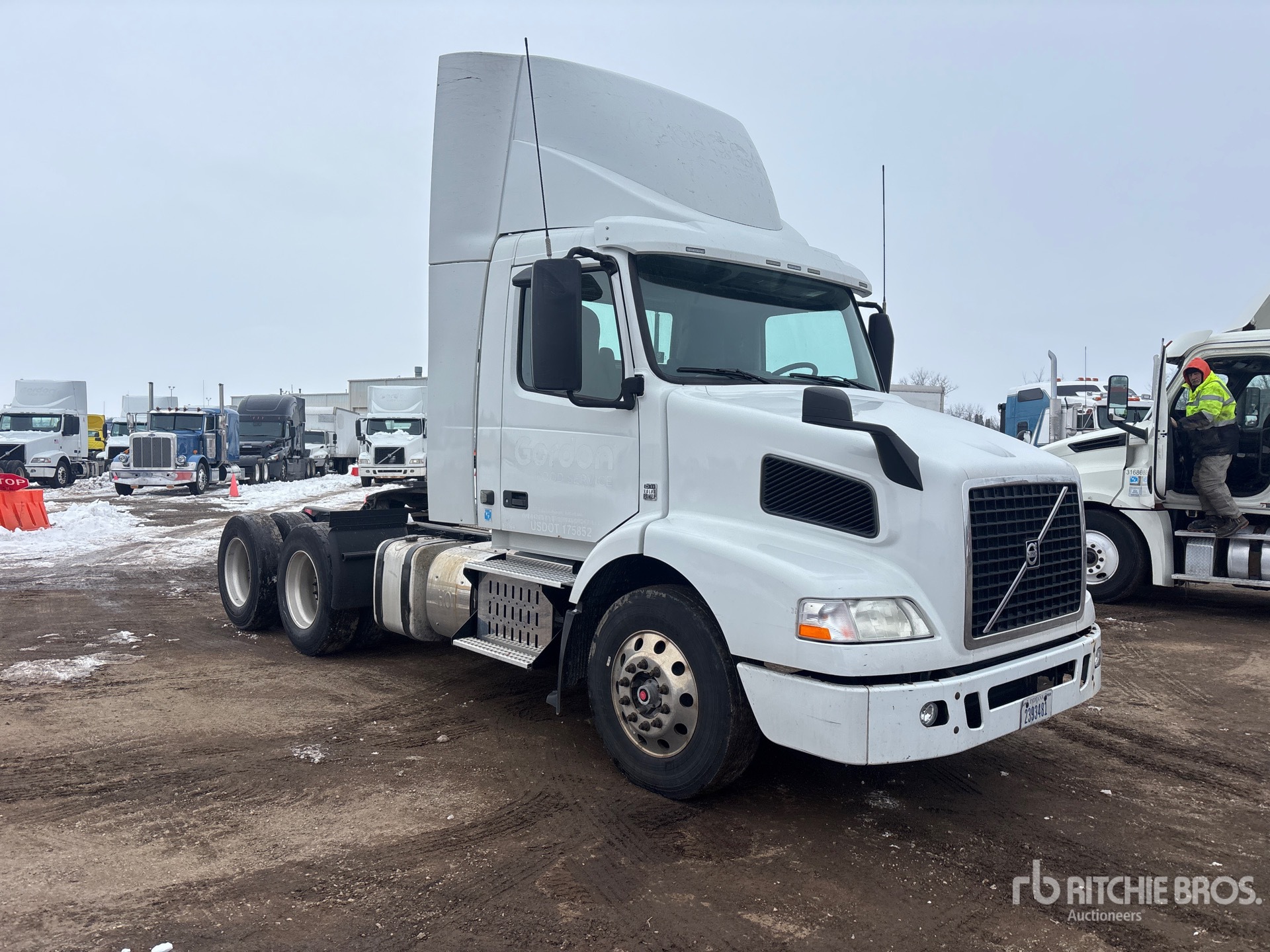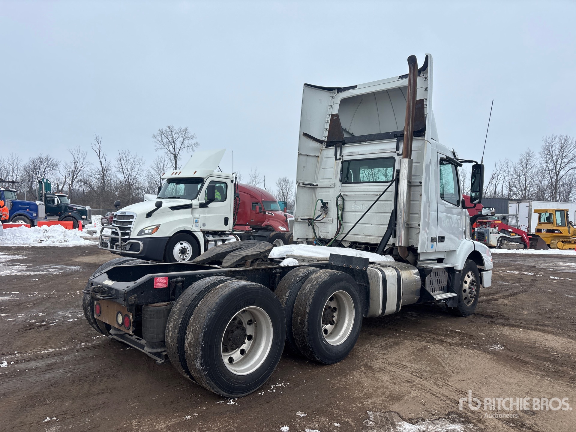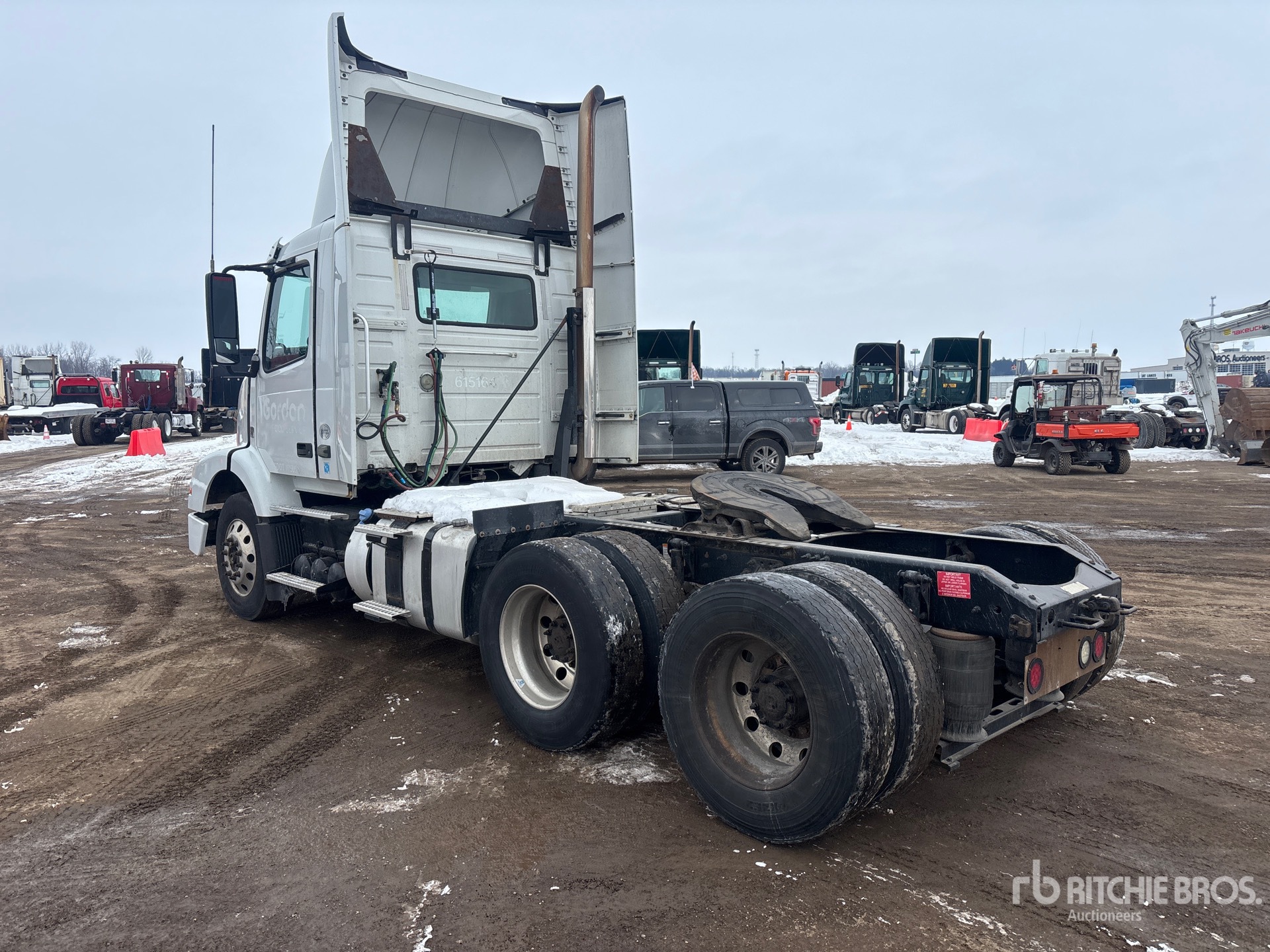 Volvo D11H 385 hp Engine, 2015 US EPA Label, 130625 Engine hrs, Eaton Fuller FR-14210B 10-Speed Manual Transmission, 12000 lb Front Axle, 38000 lb Rears, 50000 lb GVWR, 172 in Wheelbase, Air Suspension, Aluminum Wheels, 295/75R22.5, Dual Fuel Tanks