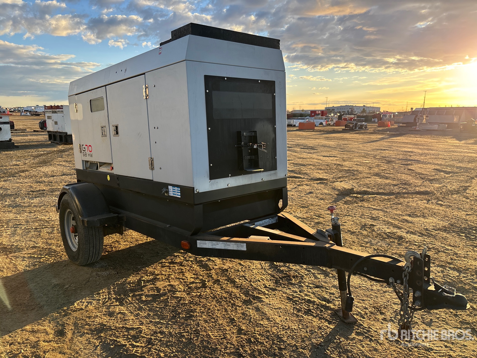 John Deere 4045TF285 4 Cylinder Diesel Engine, 72 kVA/58 kW Rated 3 Phase Output, 240 V / 480 V Rated Voltage, Lunette Ring Carrier Trailer
