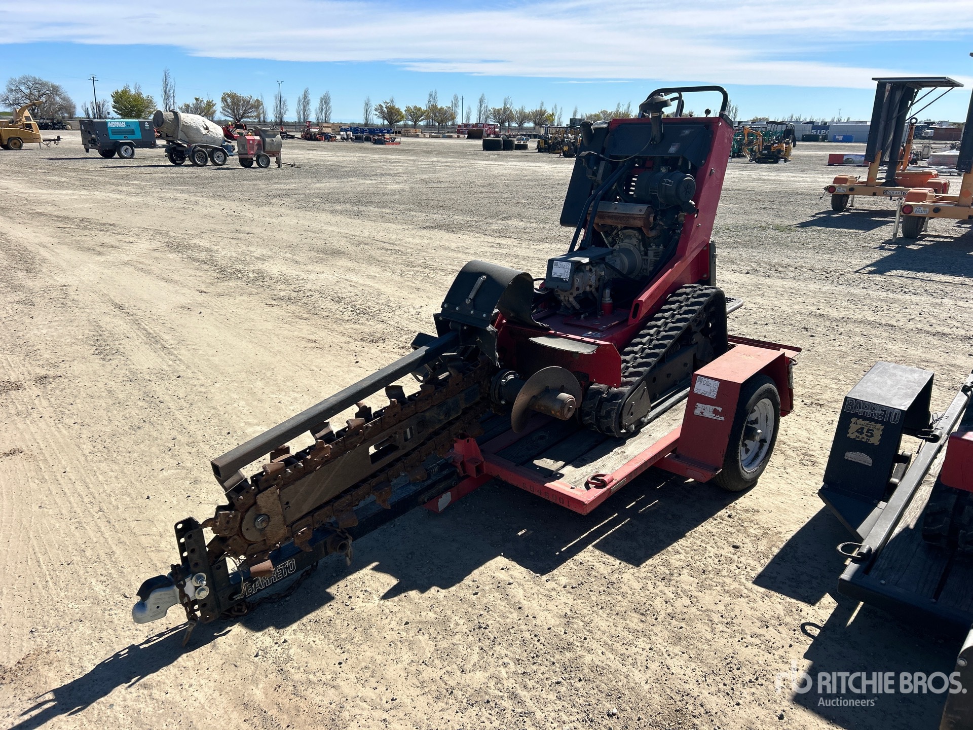 2015 US EPA Label, Honda Gasoline Engine, 4 in Wide x 3 ft 10 in Long Dirt Trencher Chain, 7 in Rubber Tracks, S/A Trailer w/ S/N- 1B9UC061X8L280536, Ball Hitch