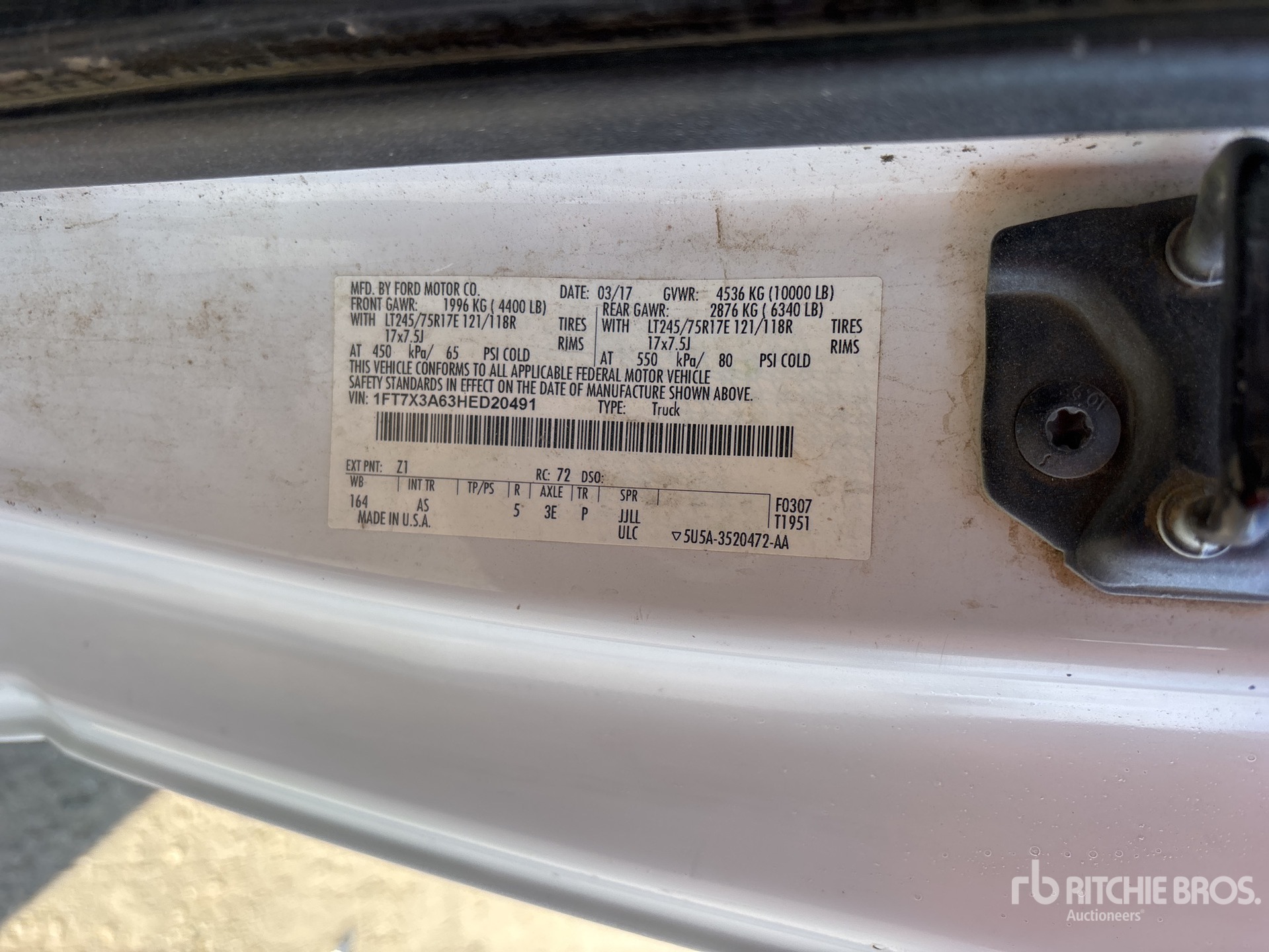 The detailed equipment information is limited in scope, and Ritchie Bros. Auctioneers has not inspected any aspects or components of the equipment other than those expressly set forth herein. Unless expressly stated, we make no representations or warranties, express or implied, concerning the equipment or its components, including without limitation any representations or warranties concerning functionality, conformity or compliance with any safety standard or requirement of any applicable authority or regulatory body, fitness for any particular purpose, or merchantability. You are strongly advised to perform your own detailed inspection of the equipment prior to bidding.