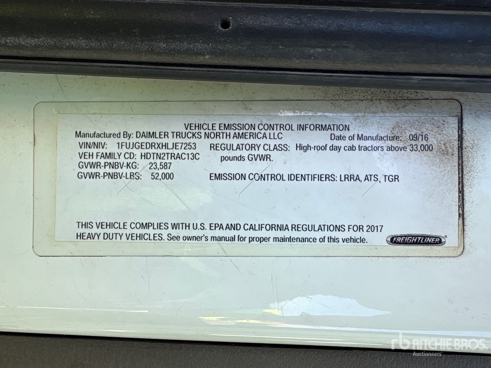 Detroit DD15 505 hp Engine, Engine Coolant Heater, 2017 US EPA Label, 12000 lb Front Axle, 40000 lb Rears, 52000 lb GVWR, Engine Brake, Double Differential Locks, 180 in Wheelbase, Air Suspension, Aluminum Wheels, 11R22.5, Air Sliding 5th Wheel, Dual Fuel Tanks