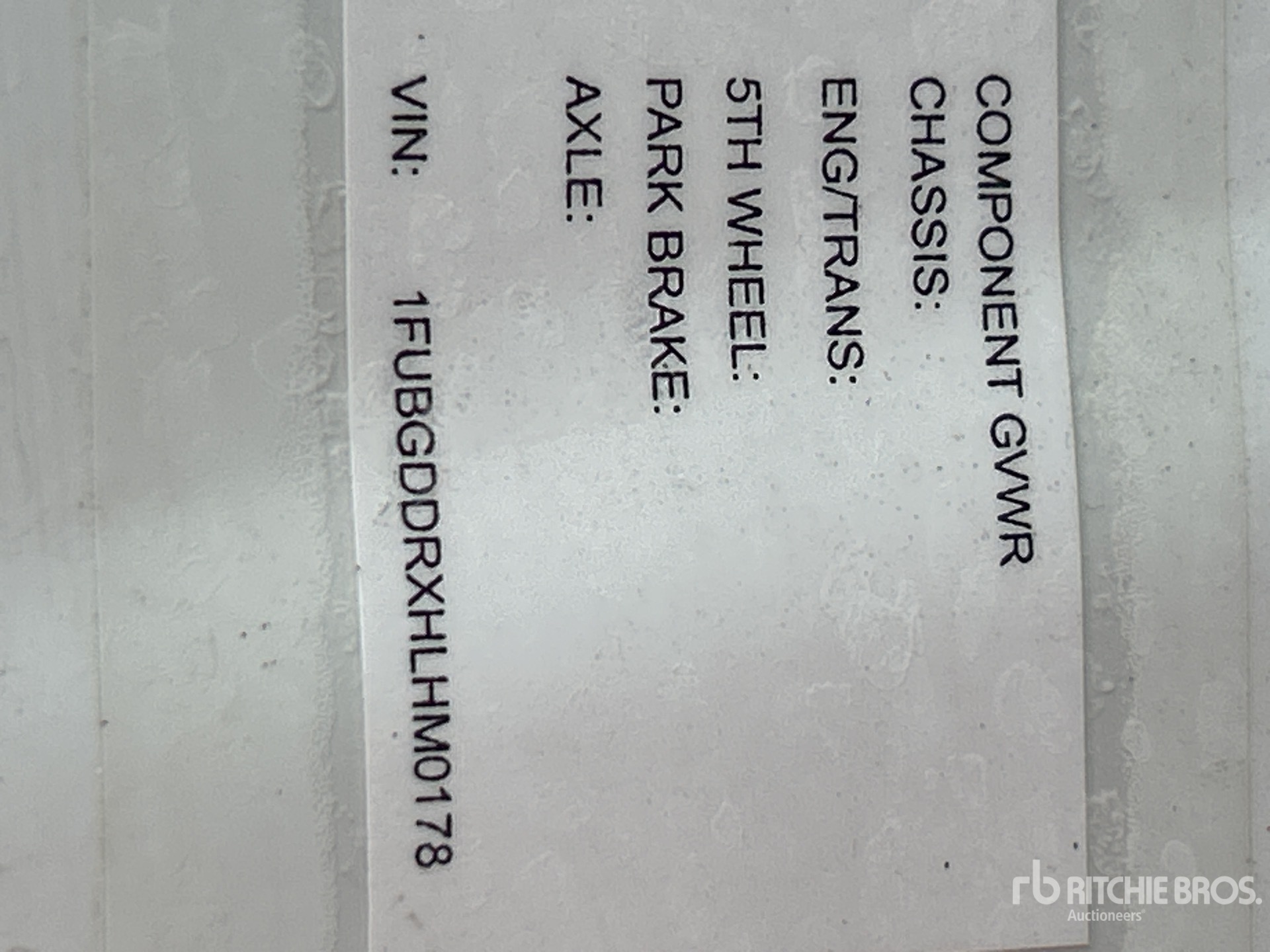 The detailed equipment information is limited in scope, and Ritchie Bros. Auctioneers has not inspected any aspects or components of the equipment other than those expressly set forth herein. Unless expressly stated, we make no representations or warranties, express or implied, concerning the equipment or its components, including without limitation any representations or warranties concerning functionality, conformity or compliance with any safety standard or requirement of any applicable authority or regulatory body, fitness for any particular purpose, or merchantability. You are strongly advised to perform your own detailed inspection of the equipment prior to bidding.